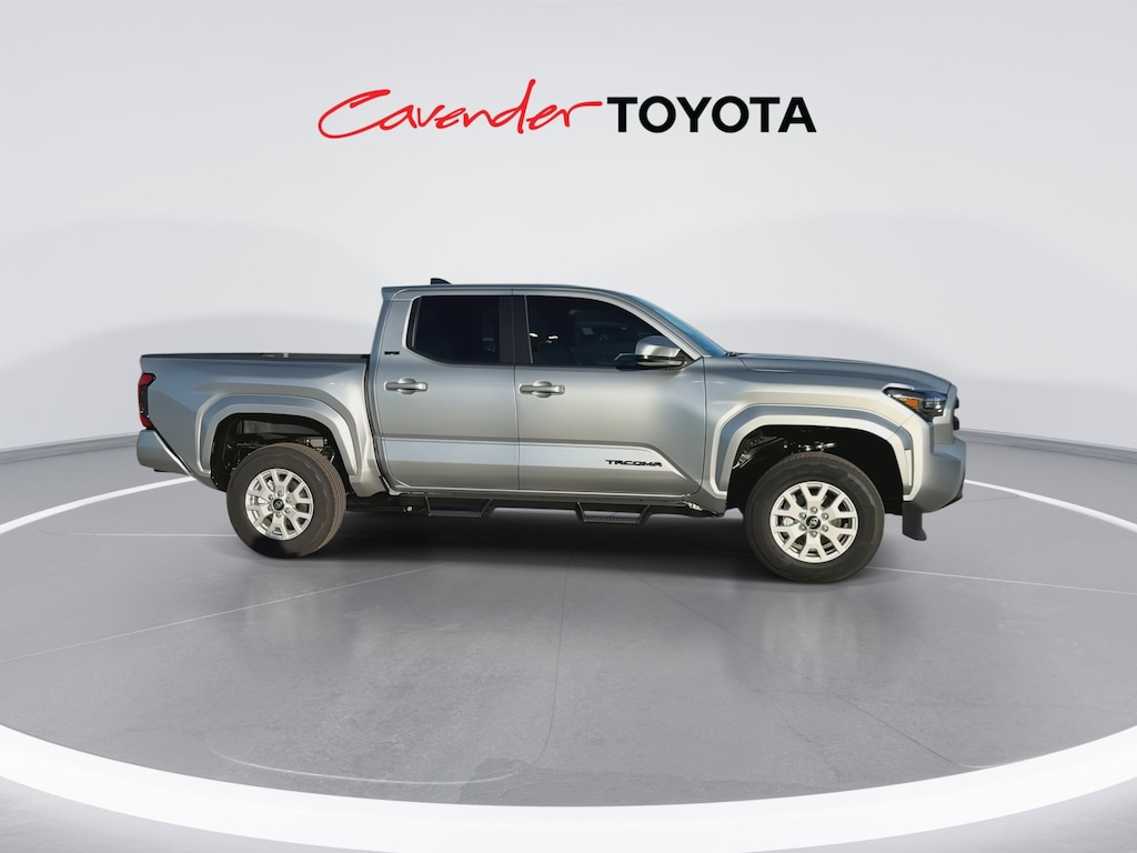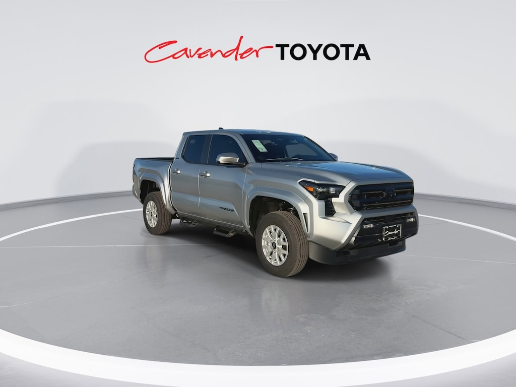 Welcome to Cavender Toyota, a Cavender Auto Family dealership. This vehicle is located at 5730 NW Loop 410, San Antonio, TX 78238. Here at Cavender, we build relationships based on trust and integrity to exceed your expectations in your ownership experience. Quite simply, we strive to Make Confidence Happen! So stop by and allow us to serve your automotive needs; we would love to meet you.Celestial Silver 2025 Toyota Tacoma SR5 4WD 8-Speed Automatic 2.4L 4-CylinderFeatures: 4WD, 3.583 Axle Ratio, 4-Wheel Disc Brakes, 6 Speakers, ABS brakes, Air Conditioning, Alloy wheels, AM/FM radio: SiriusXM, Anti-whiplash front head restraints, Apple CarPlay/Android Auto, Auto High-beam Headlights, Auto-dimming Rear-View mirror, Brake assist, Bumpers: body-color, Driver door bin, Dual front impact airbags, Dual front side impact airbags, Electronic Stability Control, Emergency communication system: Safety Connect (1-year trial), Exterior Parking Camera Rear, Fabric Seat Trim, Four wheel independent suspension, Front anti-roll bar, Front Bucket Seats, Front Center Armrest, Front fog lights, Front reading lights, Fully automatic headlights, Heated door mirrors, Illuminated entry, JBL Premium Audio, Knee airbag, Low tire pressure warning, Occupant sensing airbag, Outside temperature display, Overhead airbag, Overhead console, Panic alarm, Passenger door bin, Power door mirrors, Power steering, Power windows, Radio: 8" Toyota Audio Multimedia, Rear step bumper, Rear window defroster, Remote keyless entry, Speed control, Speed-sensing steering, Split folding rear seat, Spray-On Bed Liner (TMS), Steering wheel mounted audio controls, Tachometer, Telescoping steering wheel, Tilt steering wheel, Traction control, Trip computer, Variably intermittent wipers, and Wheels: 17" Styled Alloy.