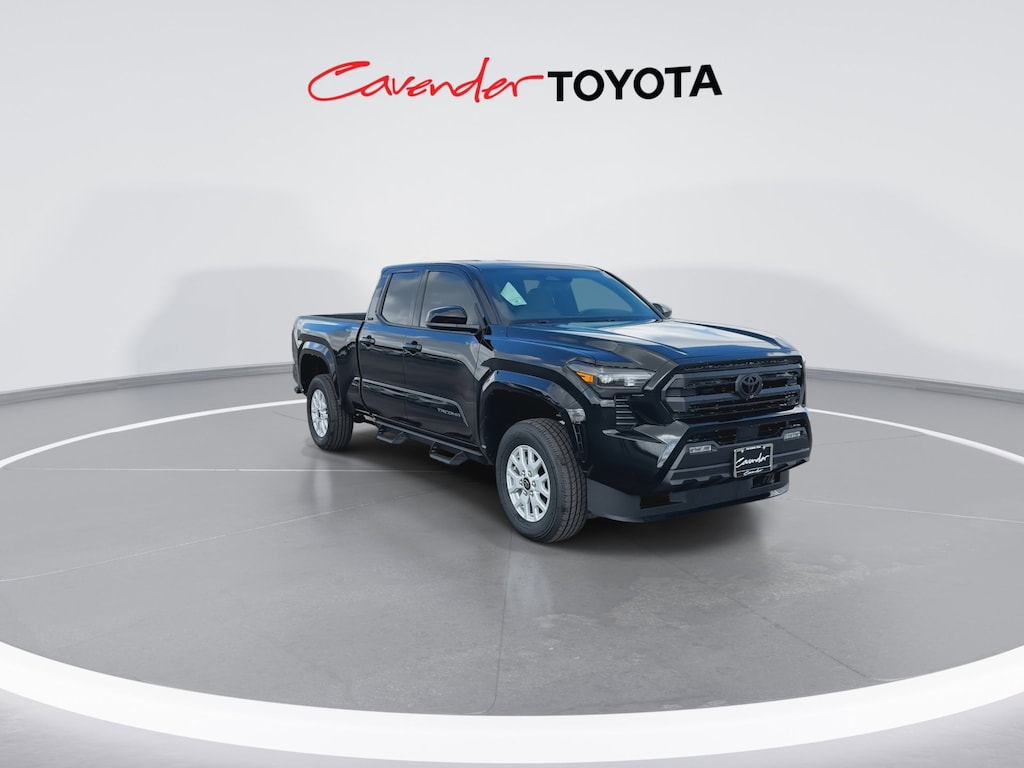 Welcome to Cavender Toyota, a Cavender Auto Family dealership. This vehicle is located at 5730 NW Loop 410, San Antonio, TX 78238. Here at Cavender, we build relationships based on trust and integrity to exceed your expectations in your ownership experience. Quite simply, we strive to Make Confidence Happen! So stop by and allow us to serve your automotive needs; we would love to meet you.Black 2025 Toyota Tacoma SR5 4WD 8-Speed Automatic 2.4L 4-CylinderFeatures: 4WD, 3.583 Axle Ratio, 4-Wheel Disc Brakes, 6 Speakers, ABS brakes, Air Conditioning, Alloy wheels, AM/FM radio: SiriusXM, Anti-whiplash front head restraints, Apple CarPlay/Android Auto, Auto High-beam Headlights, Auto-dimming Rear-View mirror, Bed Step (TMS), Brake assist, Bumpers: body-color, Driver door bin, Dual front impact airbags, Dual front side impact airbags, Electronic Stability Control, Emergency communication system: Safety Connect (1-year trial), Exterior Parking Camera Rear, Fabric Seat Trim, Four wheel independent suspension, Front anti-roll bar, Front Bucket Seats, Front Center Armrest, Front fog lights, Front reading lights, Fully automatic headlights, Heated door mirrors, Illuminated entry, JBL Premium Audio, Knee airbag, Low tire pressure warning, Occupant sensing airbag, Outside temperature display, Overhead airbag, Overhead console, Panic alarm, Passenger door bin, Power door mirrors, Power steering, Power windows, Predator Step (TMS), Radio: 8" Toyota Audio Multimedia, Rear step bumper, Rear window defroster, Remote keyless entry, Speed control, Speed-sensing steering, Split folding rear seat, Spray-On Bed Liner (TMS), Steering wheel mounted audio controls, Tachometer, Telescoping steering wheel, Tilt steering wheel, Traction control, Trip computer, Variably intermittent wipers, and Wheels: 17" Styled Alloy.