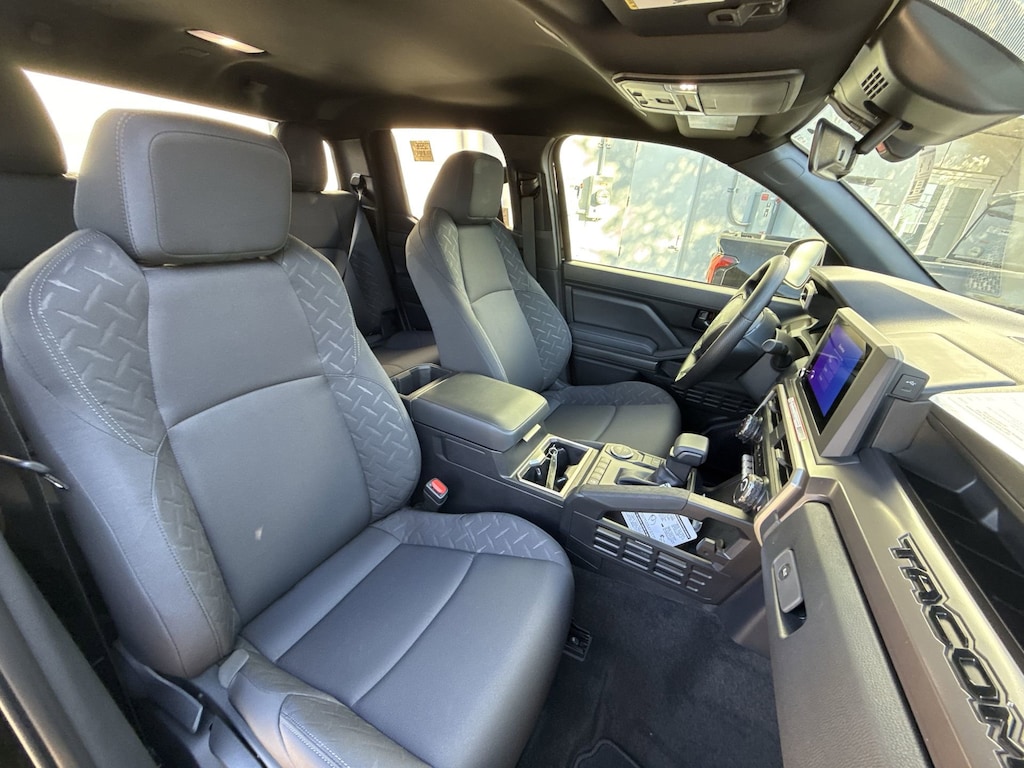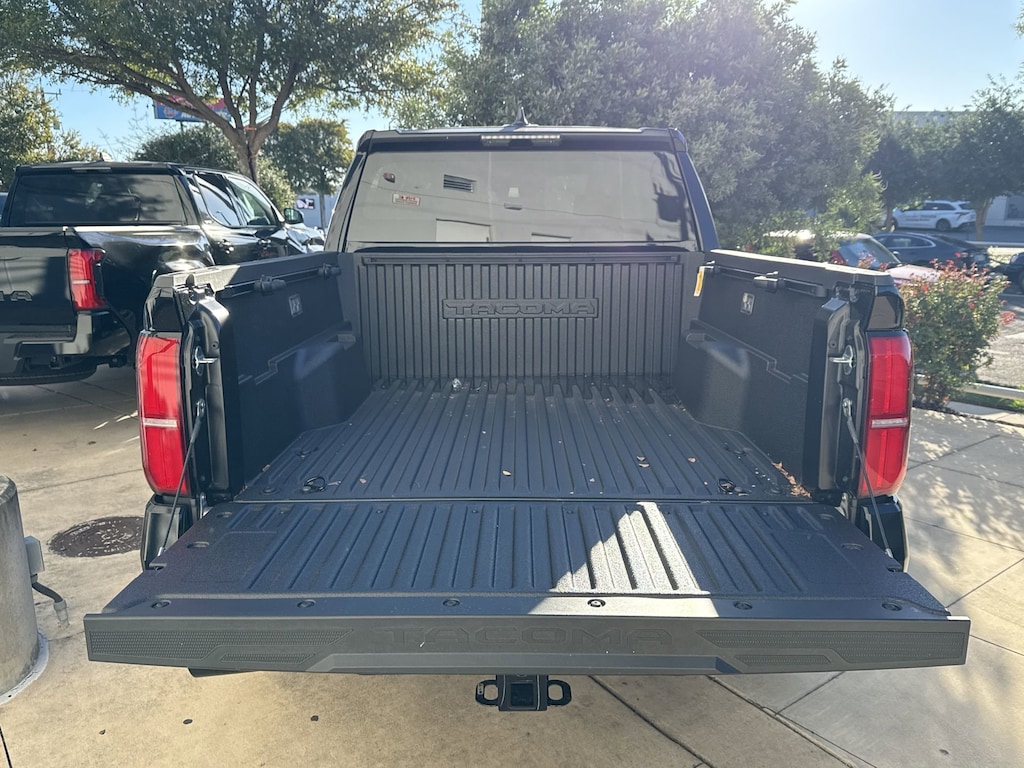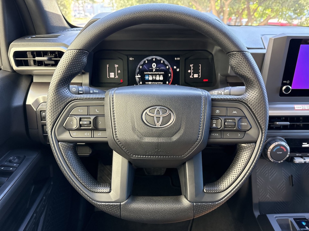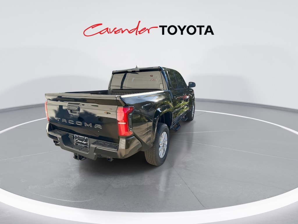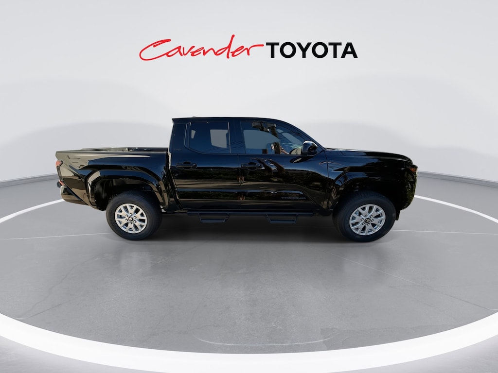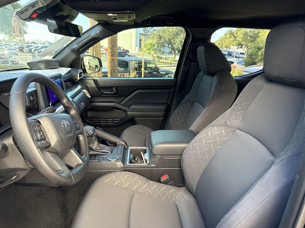 Welcome to Cavender Toyota, a Cavender Auto Family dealership. This vehicle is located at 5730 NW Loop 410, San Antonio, TX 78238. Here at Cavender, we build relationships based on trust and integrity to exceed your expectations in your ownership experience. Quite simply, we strive to Make Confidence Happen! So stop by and allow us to serve your automotive needs; we would love to meet you.Black 2025 Toyota Tacoma SR5 RWD 8-Speed Automatic 2.4L 4-CylinderFeatures: 3.583 Axle Ratio, 4-Wheel Disc Brakes, 6 Speakers, ABS brakes, Air Conditioning, Alloy wheels, AM/FM radio: SiriusXM, Anti-whiplash front head restraints, Apple CarPlay/Android Auto, Auto High-beam Headlights, Auto-dimming Rear-View mirror, Brake assist, Bumpers: body-color, Driver door bin, Dual front impact airbags, Dual front side impact airbags, Electronic Stability Control, Emergency communication system: Safety Connect (1-year trial), Exterior Parking Camera Rear, Fabric Seat Trim, Four wheel independent suspension, Front anti-roll bar, Front Bucket Seats, Front Center Armrest, Front fog lights, Front reading lights, Fully automatic headlights, Heated door mirrors, Illuminated entry, Knee airbag, Low tire pressure warning, Occupant sensing airbag, Outside temperature display, Overhead airbag, Overhead console, Panic alarm, Passenger door bin, Power door mirrors, Power steering, Power windows, Predator Step (TMS), Radio: 8" Toyota Audio Multimedia, Rear step bumper, Rear window defroster, Remote keyless entry, Speed control, Speed-sensing steering, Split folding rear seat, Spray-On Bed Liner (TMS), Steering wheel mounted audio controls, Tachometer, Telescoping steering wheel, Tilt steering wheel, Traction control, Trip computer, Variably intermittent wipers, and Wheels: 17" Styled Alloy.