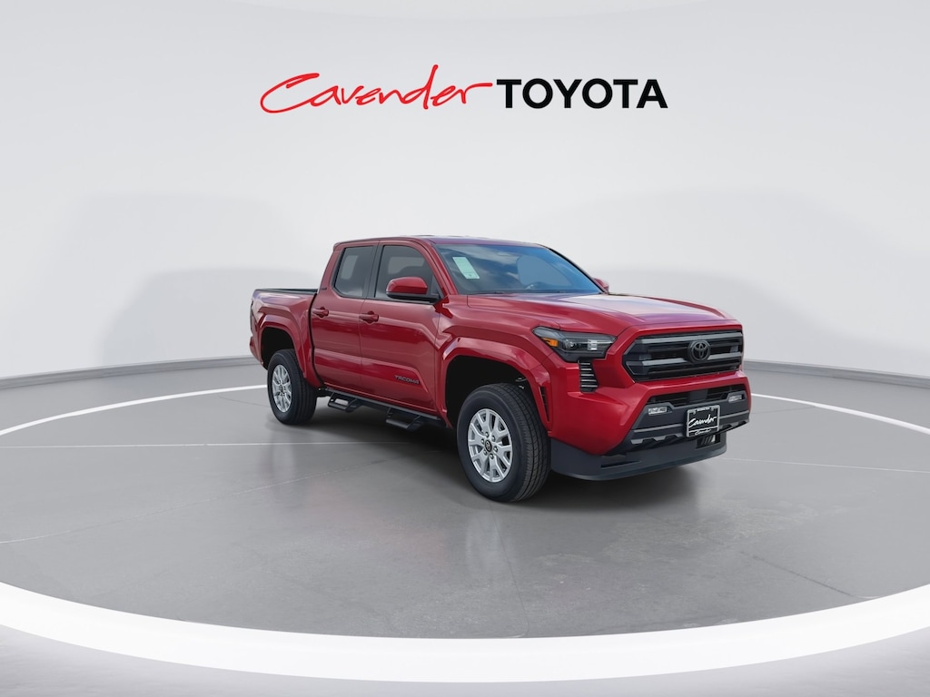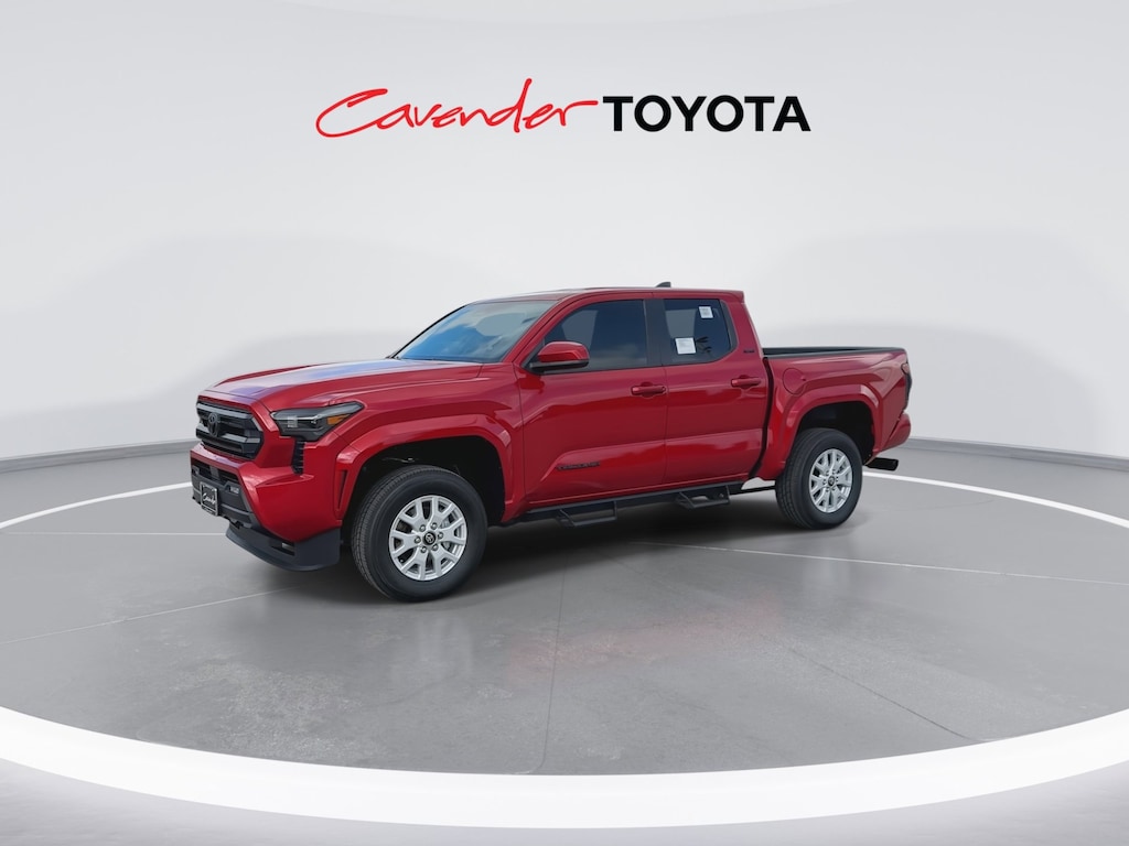 Welcome to Cavender Toyota, a Cavender Auto Family dealership. This vehicle is located at 5730 NW Loop 410, San Antonio, TX 78238. Here at Cavender, we build relationships based on trust and integrity to exceed your expectations in your ownership experience. Quite simply, we strive to Make Confidence Happen! So stop by and allow us to serve your automotive needs; we would love to meet you.Red 2025 Toyota Tacoma SR5 4WD 8-Speed Automatic 2.4L 4-CylinderFeatures: 4WD, 3.583 Axle Ratio, 4-Wheel Disc Brakes, 6 Speakers, ABS brakes, Air Conditioning, Alloy wheels, AM/FM radio: SiriusXM, Anti-whiplash front head restraints, Apple CarPlay/Android Auto, Auto High-beam Headlights, Auto-dimming Rear-View mirror, Brake assist, Bumpers: body-color, Driver door bin, Dual front impact airbags, Dual front side impact airbags, Electronic Stability Control, Emergency communication system: Safety Connect (1-year trial), Exterior Parking Camera Rear, Fabric Seat Trim, Four wheel independent suspension, Front anti-roll bar, Front Bucket Seats, Front Center Armrest, Front fog lights, Front reading lights, Fully automatic headlights, Heated door mirrors, Illuminated entry, JBL Premium Audio, Knee airbag, Low tire pressure warning, Occupant sensing airbag, Outside temperature display, Overhead airbag, Overhead console, Panic alarm, Passenger door bin, Power door mirrors, Power steering, Power windows, Radio: 8" Toyota Audio Multimedia, Rear step bumper, Rear window defroster, Remote keyless entry, Speed control, Speed-sensing steering, Split folding rear seat, Spray-On Bed Liner (TMS), Steering wheel mounted audio controls, Tachometer, Telescoping steering wheel, Tilt steering wheel, Traction control, Trip computer, Variably intermittent wipers, and Wheels: 17" Styled Alloy.