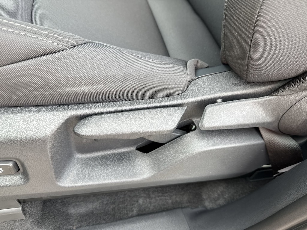 - Fabric-trimmed seats; 6-way manually adjustable driver and front passenger seats with 2-way power-adjustable lumbar support on driver's seat only.