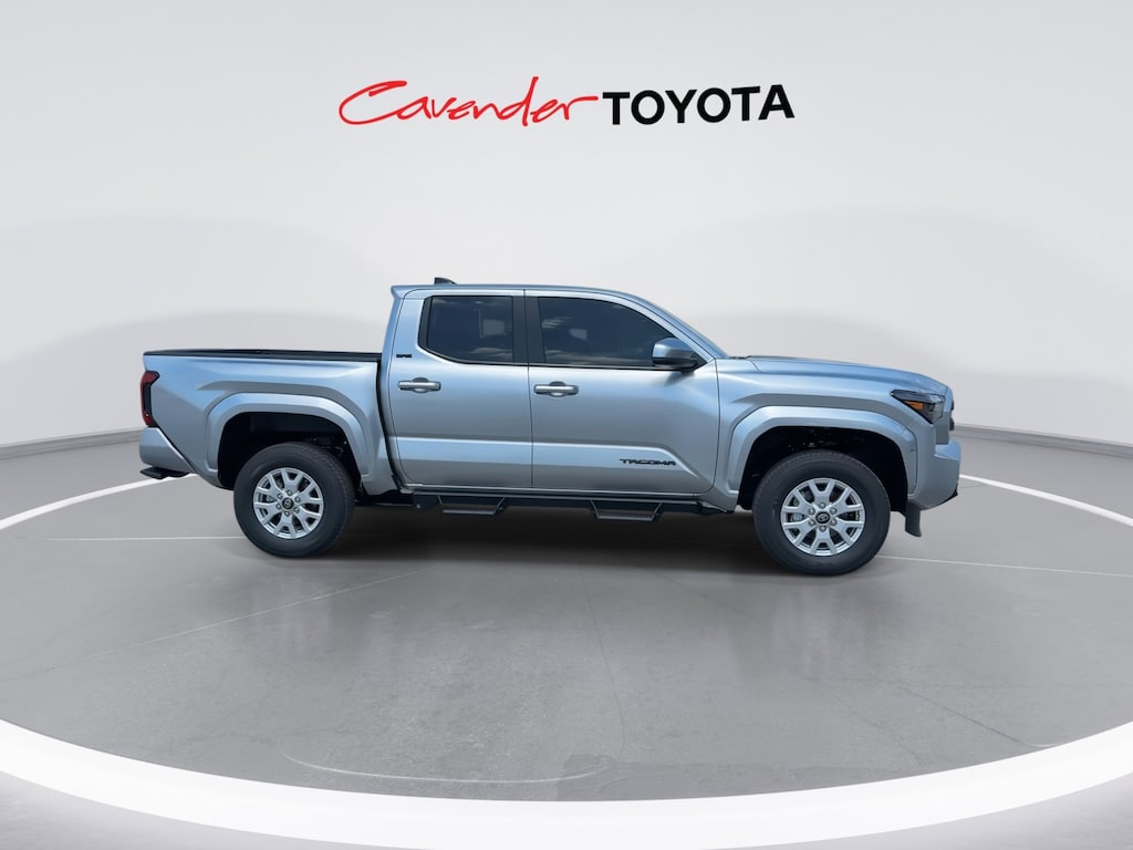Welcome to Cavender Toyota, a Cavender Auto Family dealership. This vehicle is located at 5730 NW Loop 410, San Antonio, TX 78238. Here at Cavender, we build relationships based on trust and integrity to exceed your expectations in your ownership experience. Quite simply, we strive to Make Confidence Happen! So stop by and allow us to serve your automotive needs; we would love to meet you.Celestial Silver 2025 Toyota Tacoma SR5 4WD 8-Speed Automatic 2.4L 4-CylinderFeatures: 4WD, 3.583 Axle Ratio, 4-Wheel Disc Brakes, 6 Speakers, ABS brakes, Air Conditioning, Alloy wheels, AM/FM radio: SiriusXM, Anti-whiplash front head restraints, Apple CarPlay/Android Auto, Auto High-beam Headlights, Auto-dimming Rear-View mirror, Bed Step (TMS), Brake assist, Bumpers: body-color, Driver door bin, Dual front impact airbags, Dual front side impact airbags, Electronic Stability Control, Emergency communication system: Safety Connect (1-year trial), Exterior Parking Camera Rear, Fabric Seat Trim, Four wheel independent suspension, Front anti-roll bar, Front Bucket Seats, Front Center Armrest, Front fog lights, Front reading lights, Fully automatic headlights, Heated door mirrors, Illuminated entry, JBL Premium Audio, Knee airbag, Low tire pressure warning, Occupant sensing airbag, Outside temperature display, Overhead airbag, Overhead console, Panic alarm, Passenger door bin, Power door mirrors, Power steering, Power windows, Predator Step (TMS), Radio: 8" Toyota Audio Multimedia, Rear step bumper, Rear window defroster, Remote keyless entry, Speed control, Speed-sensing steering, Split folding rear seat, Spray-On Bed Liner (TMS), Steering wheel mounted audio controls, Tachometer, Telescoping steering wheel, Tilt steering wheel, Traction control, Trip computer, Variably intermittent wipers, and Wheels: 17" Styled Alloy.