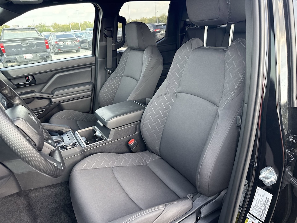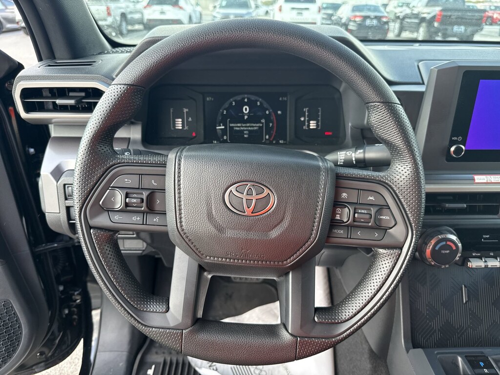 Welcome to Cavender Toyota, a Cavender Auto Family dealership. This vehicle is located at 5730 NW Loop 410, San Antonio, TX 78238. Here at Cavender, we build relationships based on trust and integrity to exceed your expectations in your ownership experience. Quite simply, we strive to Make Confidence Happen! So stop by and allow us to serve your automotive needs; we would love to meet you.Black 2025 Toyota Tacoma SR5 4WD 8-Speed Automatic 2.4L 4-CylinderFeatures: 4WD, 3.583 Axle Ratio, 4-Wheel Disc Brakes, 6 Speakers, ABS brakes, Air Conditioning, All Weather Floor Liners (TMS), Alloy wheels, AM/FM radio: SiriusXM, Anti-whiplash front head restraints, Apple CarPlay/Android Auto, Auto High-beam Headlights, Auto-dimming Rear-View mirror, Brake assist, Bumpers: body-color, Driver door bin, Dual front impact airbags, Dual front side impact airbags, Electronic Stability Control, Emergency communication system: Safety Connect (1-year trial), Exterior Parking Camera Rear, Fabric Seat Trim, Four wheel independent suspension, Front anti-roll bar, Front Bucket Seats, Front Center Armrest, Front fog lights, Front reading lights, Fully automatic headlights, Gunmetal Badge Overlay (TMS), Heated door mirrors, Illuminated entry, JBL Premium Audio, Knee airbag, Low tire pressure warning, Occupant sensing airbag, Outside temperature display, Overhead airbag, Overhead console, Panic alarm, Passenger door bin, Power door mirrors, Power steering, Power windows, Radio: 8" Toyota Audio Multimedia, Rear step bumper, Rear window defroster, Remote keyless entry, Speed control, Speed-sensing steering, Split folding rear seat, Spray-On Bed Liner (TMS), Steering wheel mounted audio controls, Tachometer, Telescoping steering wheel, Tilt steering wheel, Traction control, Trip computer, Variably intermittent wipers, and Wheels: 17" Styled Alloy.