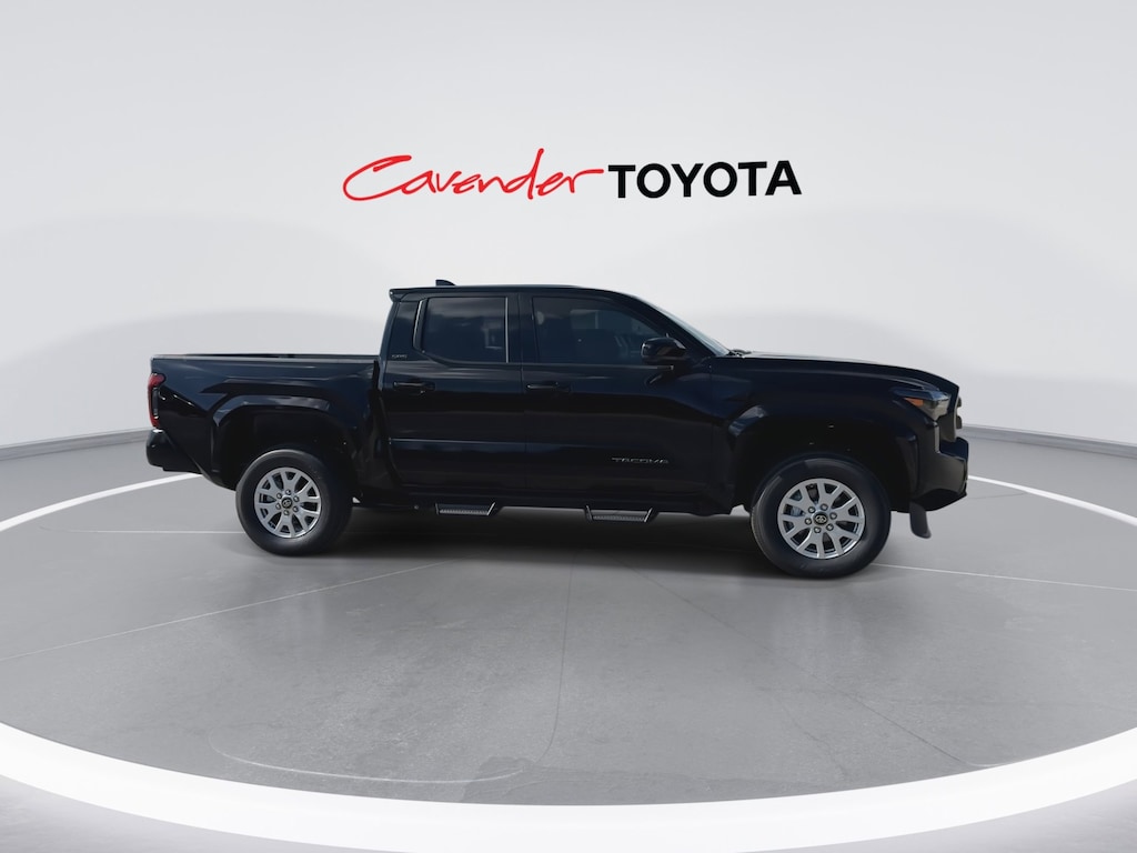 Welcome to Cavender Toyota, a Cavender Auto Family dealership. This vehicle is located at 5730 NW Loop 410, San Antonio, TX 78238. Here at Cavender, we build relationships based on trust and integrity to exceed your expectations in your ownership experience. Quite simply, we strive to Make Confidence Happen! So stop by and allow us to serve your automotive needs; we would love to meet you.Black 2025 Toyota Tacoma SR5 4WD 8-Speed Automatic 2.4L 4-CylinderFeatures: 4WD, 3.583 Axle Ratio, 4-Wheel Disc Brakes, 6 Speakers, ABS brakes, Air Conditioning, Alloy wheels, AM/FM radio: SiriusXM, Anti-whiplash front head restraints, Apple CarPlay/Android Auto, Auto High-beam Headlights, Auto-dimming Rear-View mirror, Brake assist, Bumpers: body-color, Driver door bin, Dual front impact airbags, Dual front side impact airbags, Electronic Stability Control, Emergency communication system: Safety Connect (1-year trial), Exterior Parking Camera Rear, Fabric Seat Trim, Four wheel independent suspension, Front anti-roll bar, Front Bucket Seats, Front Center Armrest, Front fog lights, Front reading lights, Fully automatic headlights, Heated door mirrors, Illuminated entry, JBL Premium Audio, Knee airbag, Low tire pressure warning, Occupant sensing airbag, Outside temperature display, Overhead airbag, Overhead console, Panic alarm, Passenger door bin, Power door mirrors, Power steering, Power windows, Radio: 8" Toyota Audio Multimedia, Rear step bumper, Rear window defroster, Remote keyless entry, Speed control, Speed-sensing steering, Split folding rear seat, Spray-On Bed Liner (TMS), Steering wheel mounted audio controls, Tachometer, Telescoping steering wheel, Tilt steering wheel, Traction control, Trip computer, Variably intermittent wipers, and Wheels: 17" Styled Alloy.