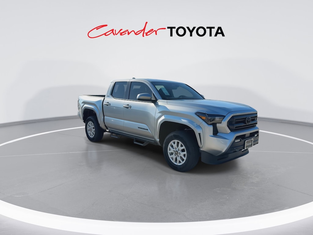 Welcome to Cavender Toyota, a Cavender Auto Family dealership. This vehicle is located at 5730 NW Loop 410, San Antonio, TX 78238. Here at Cavender, we build relationships based on trust and integrity to exceed your expectations in your ownership experience. Quite simply, we strive to Make Confidence Happen! So stop by and allow us to serve your automotive needs; we would love to meet you.Celestial Silver 2025 Toyota Tacoma SR5 4WD 8-Speed Automatic 2.4L 4-CylinderFeatures: 4WD, 3.583 Axle Ratio, 4-Wheel Disc Brakes, 6 Speakers, ABS brakes, Air Conditioning, Alloy wheels, AM/FM radio: SiriusXM, Anti-whiplash front head restraints, Apple CarPlay/Android Auto, Auto High-beam Headlights, Auto-dimming Rear-View mirror, Brake assist, Bumpers: body-color, Driver door bin, Dual front impact airbags, Dual front side impact airbags, Electronic Stability Control, Emergency communication system: Safety Connect (1-year trial), Exterior Parking Camera Rear, Fabric Seat Trim, Four wheel independent suspension, Front anti-roll bar, Front Bucket Seats, Front Center Armrest, Front fog lights, Front reading lights, Fully automatic headlights, Heated door mirrors, Illuminated entry, JBL Premium Audio, Knee airbag, Low tire pressure warning, Occupant sensing airbag, Outside temperature display, Overhead airbag, Overhead console, Panic alarm, Passenger door bin, Power door mirrors, Power steering, Power windows, Radio: 8" Toyota Audio Multimedia, Rear step bumper, Rear window defroster, Remote keyless entry, Speed control, Speed-sensing steering, Split folding rear seat, Spray-On Bed Liner (TMS), Steering wheel mounted audio controls, Tachometer, Telescoping steering wheel, Tilt steering wheel, Traction control, Trip computer, Variably intermittent wipers, and Wheels: 17" Styled Alloy.