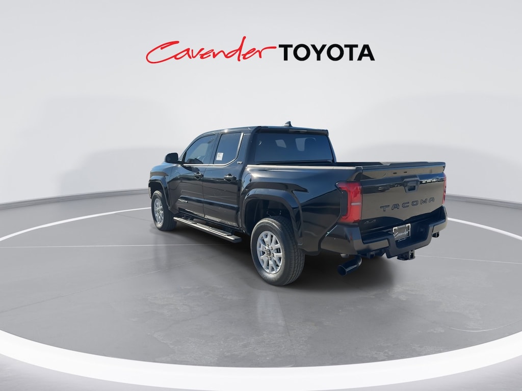 Welcome to Cavender Toyota, a Cavender Auto Family dealership. This vehicle is located at 5730 NW Loop 410, San Antonio, TX 78238. Here at Cavender, we build relationships based on trust and integrity to exceed your expectations in your ownership experience. Quite simply, we strive to Make Confidence Happen! So stop by and allow us to serve your automotive needs; we would love to meet you.Black 2025 Toyota Tacoma SR5 4WD 8-Speed Automatic 2.4L 4-CylinderFeatures: 4WD, 3.583 Axle Ratio, 4-Wheel Disc Brakes, 6 Speakers, ABS brakes, Air Conditioning, Alloy wheels, AM/FM radio: SiriusXM, Anti-whiplash front head restraints, Apple CarPlay/Android Auto, Auto High-beam Headlights, Auto-dimming Rear-View mirror, Brake assist, Bumpers: body-color, Driver door bin, Dual front impact airbags, Dual front side impact airbags, Electronic Stability Control, Emergency communication system: Safety Connect (1-year trial), Exterior Parking Camera Rear, Fabric Seat Trim, Four wheel independent suspension, Front anti-roll bar, Front Bucket Seats, Front Center Armrest, Front fog lights, Front reading lights, Fully automatic headlights, Heated door mirrors, Illuminated entry, JBL Premium Audio, Knee airbag, Low tire pressure warning, Occupant sensing airbag, Outside temperature display, Overhead airbag, Overhead console, Panic alarm, Passenger door bin, Power door mirrors, Power steering, Power windows, Radio: 8" Toyota Audio Multimedia, Rear step bumper, Rear window defroster, Remote keyless entry, Speed control, Speed-sensing steering, Split folding rear seat, Spray-On Bed Liner (TMS), Steering wheel mounted audio controls, Tachometer, Telescoping steering wheel, Tilt steering wheel, Traction control, Trip computer, Variably intermittent wipers, and Wheels: 17" Styled Alloy.