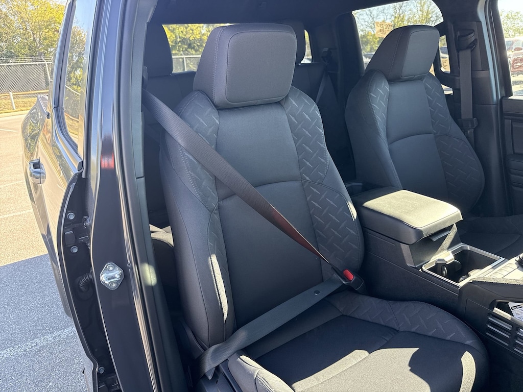 - Fabric-trimmed seats; 6-way manually adjustable driver and front passenger seats with 2-way power-adjustable lumbar support on driver's seat only.