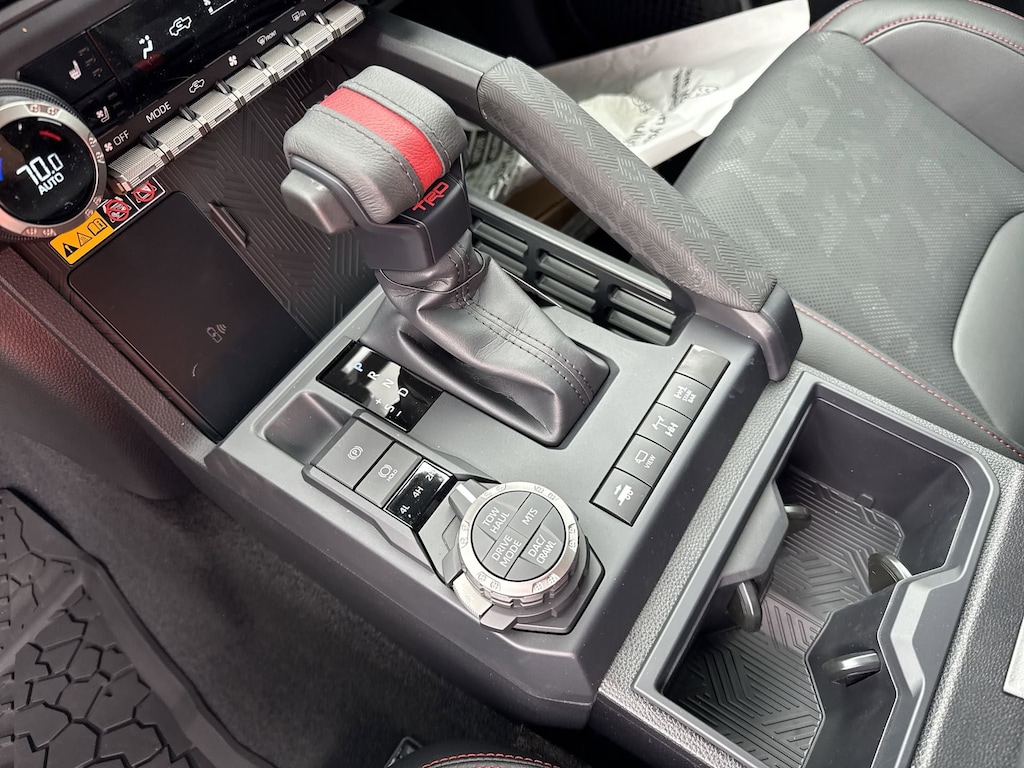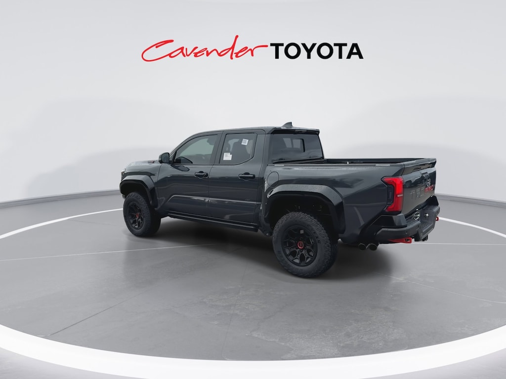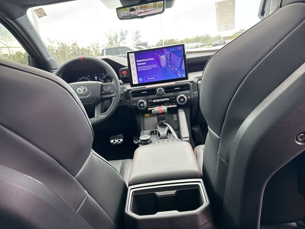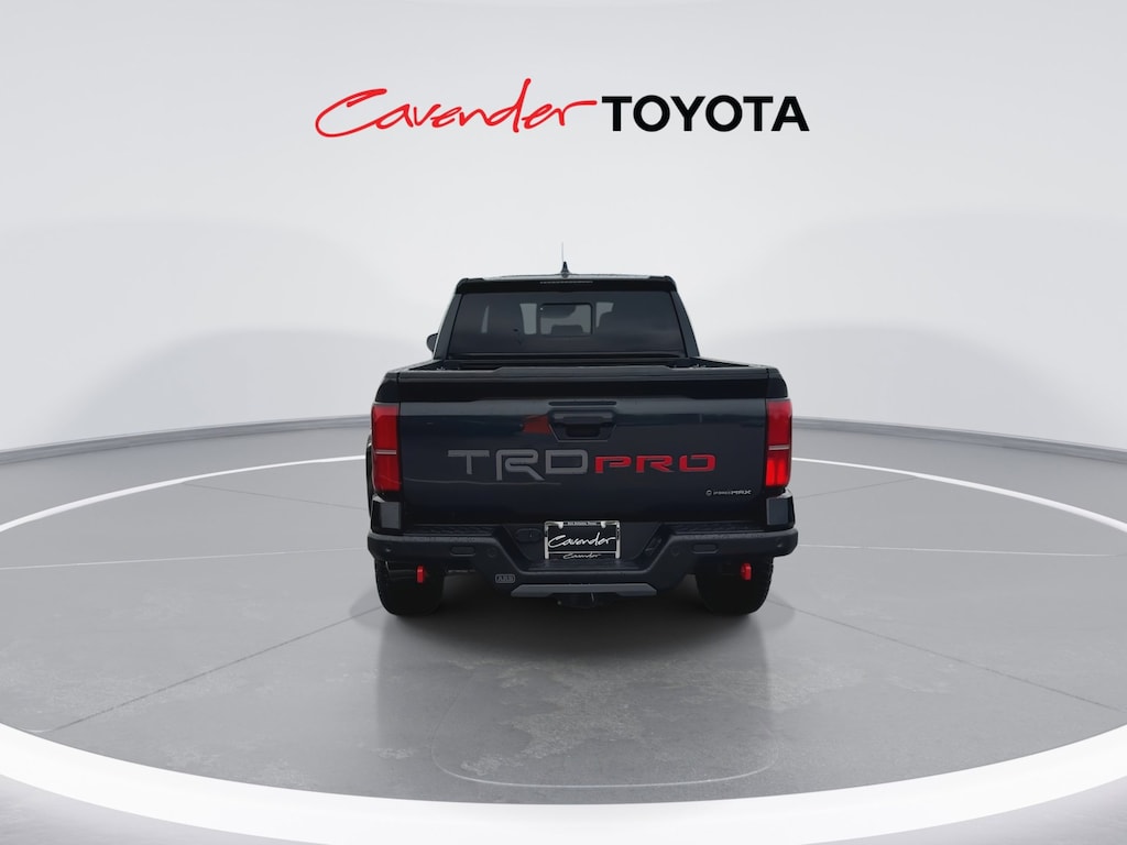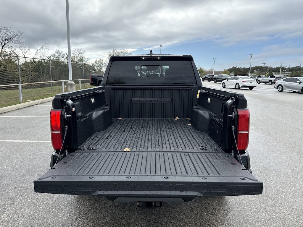 Welcome to Cavender Toyota, a Cavender Auto Family dealership. This vehicle is located at 5730 NW Loop 410, San Antonio, TX 78238. Here at Cavender, we build relationships based on trust and integrity to exceed your expectations in your ownership experience. Quite simply, we strive to Make Confidence Happen! So stop by and allow us to serve your automotive needs; we would love to meet you.Black 2025 Toyota Tacoma Hybrid TRD Pro 4WD 8-Speed Automatic 2.4L I4 PDI Hybrid Turbocharged DOHC 16VFeatures: TRD Pro Package, 2.4L I4 PDI Hybrid Turbocharged DOHC 16V, 3.583 Axle Ratio, 4-Wheel Disc Brakes, 9 Speakers, ABS brakes, Air Conditioning, Alloy wheels, AM/FM radio: SiriusXM, Anti-whiplash front head restraints, Apple CarPlay/Android Auto, Auto High-beam Headlights, Auto-dimming Rear-View mirror, Automatic temperature control, Bed Scene Lighting (TMS), Body Side Molding (TMS), Brake assist, Bumpers: body-color, Driver door bin, Driver vanity mirror, Dual front impact airbags, Dual front side impact airbags, Electronic Stability Control, Emergency communication system: Safety Connect (1-year trial), Exterior Parking Camera Rear, Four wheel independent suspension, Front anti-roll bar, Front Bucket Seats, Front Center Armrest, Front dual zone A/C, Front fog lights, Front reading lights, Fully automatic headlights, Garage door transmitter: HomeLink, Heads-Up Display, Heated door mirrors, Heated front seats, Heated steering wheel, Htd & Vent TRD Pro IsoDynamic Performance Seats, Illuminated entry, JBL Premium Audio, Knee airbag, Leather Shift Knob, Leather steering wheel, Low tire pressure warning, Navigation system: Drive Connect (1 year trial) includes Cloud Navigation with real time traffic and Google POI, Occupant sensing airbag, Outside temperature display, Overhead airbag, Overhead console, Panic alarm, Passenger door bin, Passenger vanity mirror, Power door mirrors, Power driver seat, Power moonroof, Power passenger seat, Power steering, Power windows, Radio: 14" Toyota Audio Multimedia, Rear anti-roll bar, Rear step bumper, Rear window defroster, Remote keyless entry, Security system, SofTex Seat Trim, Speed control, Speed-sensing steering, Split folding rear seat, Spray-On Bed Liner (TMS), Steering wheel mounted audio controls, Tachometer, Telescoping steering wheel, Tilt steering wheel, Traction control, Trip computer, Turn signal indicator mirrors, Variably intermittent wipers, Ventilated front seats, and Wheels: 18" Black TRD Pro Alloy.