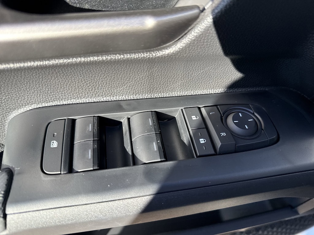 - Leather-trimmed manual tilt/telescopic steering wheel with phone, audio, display/infotainment, and driver assist controls.