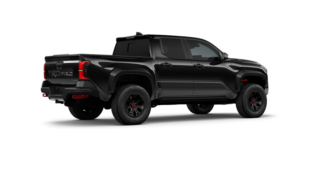 Welcome to Cavender Toyota, a Cavender Auto Family dealership. This vehicle is located at 5730 NW Loop 410, San Antonio, TX 78238. Here at Cavender, we build relationships based on trust and integrity to exceed your expectations in your ownership experience. Quite simply, we strive to Make Confidence Happen! So stop by and allow us to serve your automotive needs; we would love to meet you.Black 2025 Toyota Tacoma Hybrid TRD Pro 4WD 8-Speed Automatic 2.4L I4 PDI Hybrid Turbocharged DOHC 16VFeatures: TRD Pro Package, 2.4L I4 PDI Hybrid Turbocharged DOHC 16V, 3.583 Axle Ratio, 4-Wheel Disc Brakes, 9 Speakers, ABS brakes, Air Conditioning, Alloy wheels, AM/FM radio: SiriusXM, Anti-whiplash front head restraints, Apple CarPlay/Android Auto, Auto High-beam Headlights, Auto-dimming Rear-View mirror, Automatic temperature control, Bed Scene Lighting (TMS), Brake assist, Bumpers: body-color, Driver door bin, Driver vanity mirror, Dual front impact airbags, Dual front side impact airbags, Electronic Stability Control, Emergency communication system: Safety Connect (1-year trial), Exterior Parking Camera Rear, Four wheel independent suspension, Front anti-roll bar, Front Bucket Seats, Front Center Armrest, Front dual zone A/C, Front fog lights, Front reading lights, Fully automatic headlights, Garage door transmitter: HomeLink, Heads-Up Display, Heated door mirrors, Heated front seats, Heated steering wheel, Htd & Vent TRD Pro IsoDynamic Performance Seats, Illuminated entry, JBL Premium Audio, Knee airbag, Leather Shift Knob, Leather steering wheel, Low tire pressure warning, Navigation system: Drive Connect (1 year trial) includes Cloud Navigation with real time traffic and Google POI, Occupant sensing airbag, Outside temperature display, Overhead airbag, Overhead console, Panic alarm, Passenger door bin, Passenger vanity mirror, Power door mirrors, Power driver seat, Power moonroof, Power passenger seat, Power steering, Power windows, Radio: 14" Toyota Audio Multimedia, Rear anti-roll bar, Rear step bumper, Rear window defroster, Remote keyless entry, Security system, SofTex Seat Trim, Speed control, Speed-sensing steering, Split folding rear seat, Spray-On Bed Liner (TMS), Steering wheel mounted audio controls, Tachometer, Telescoping steering wheel, Tilt steering wheel, Traction control, Trip computer, Turn signal indicator mirrors, Variably intermittent wipers, Ventilated front seats, and Wheels: 18" Black TRD Pro Alloy.