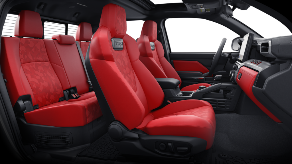 - Trd pro softex®-trimmed isodynamic performance seats with contrast stitching and technical-camo-pattern inserts; heated and ventilated 6-way power-adjustable driver and front passenger seats with 2-way manual recline and 4-way power-adjustable lumbar support.