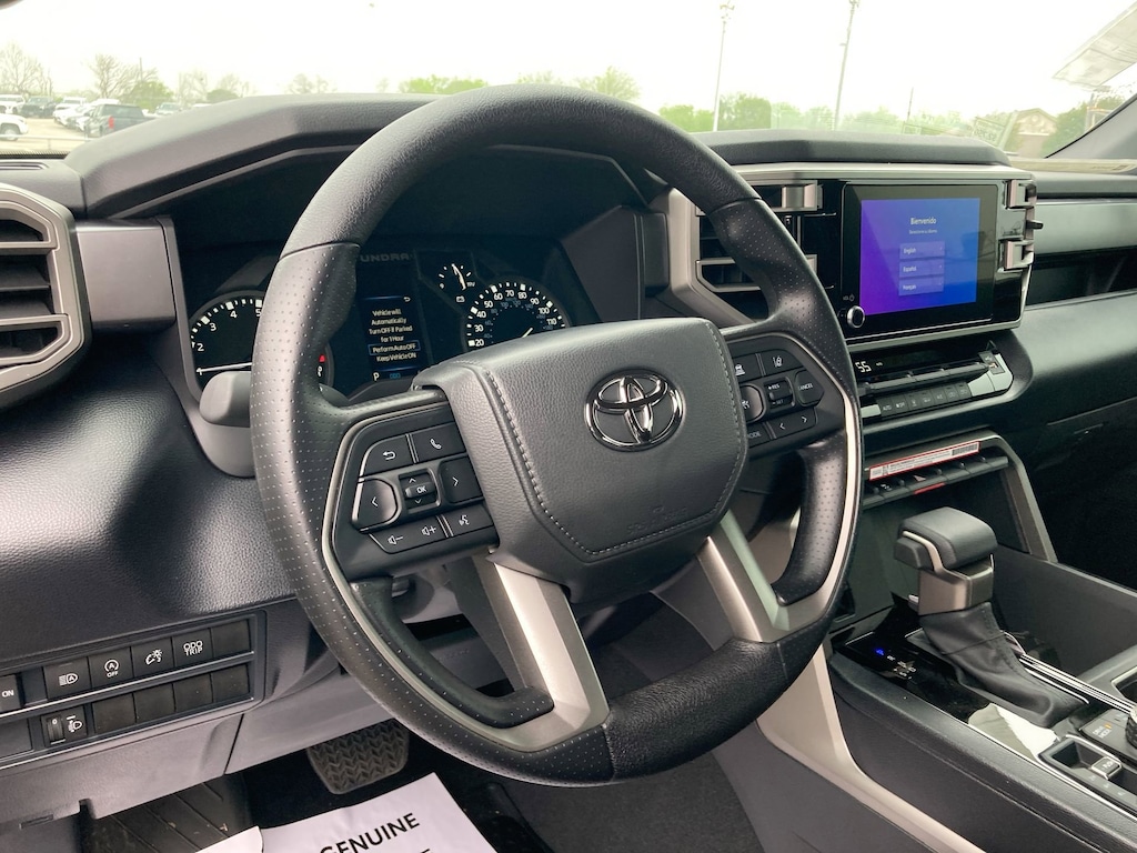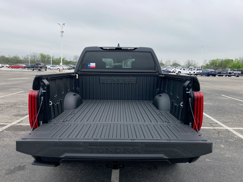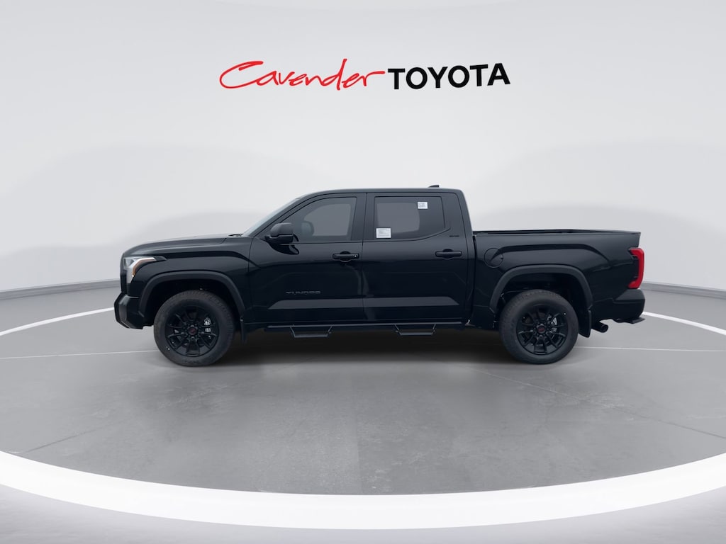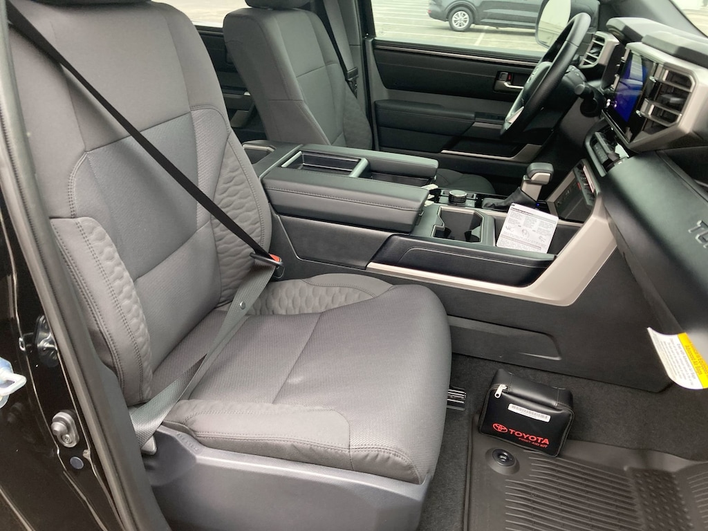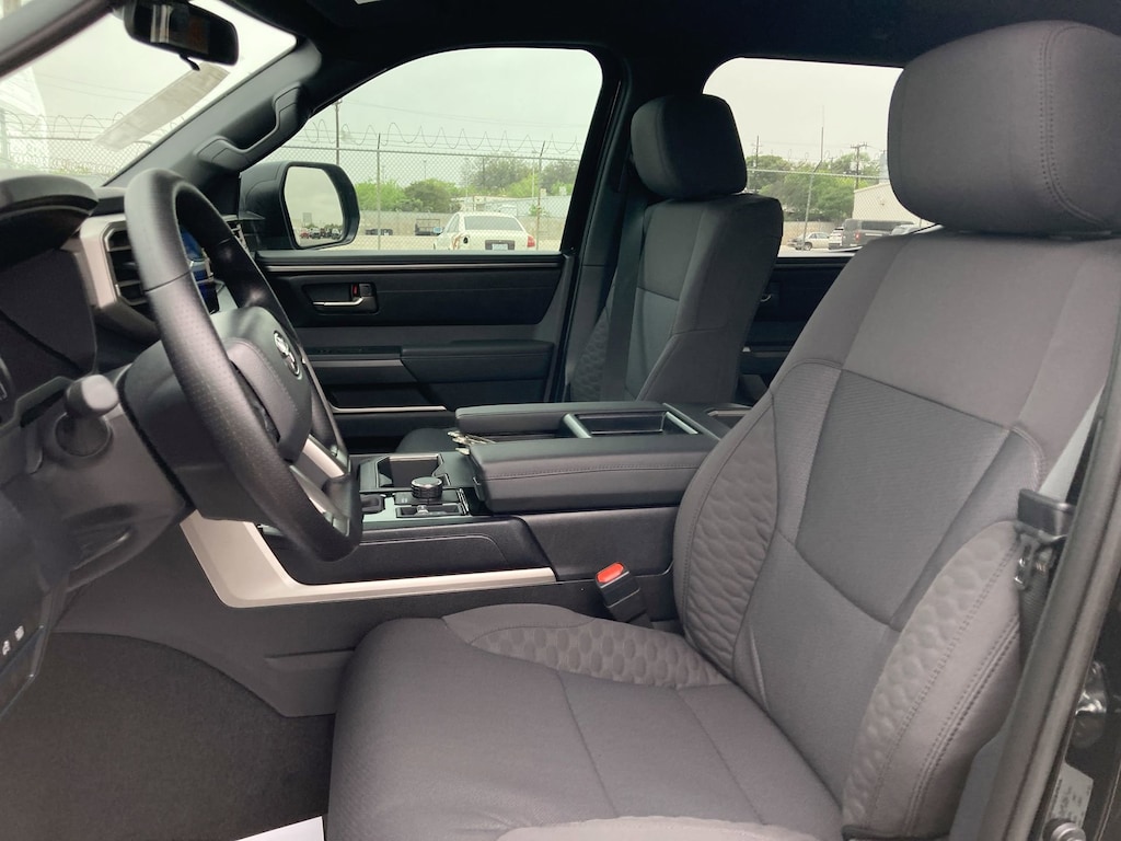 Welcome to Cavender Toyota, a Cavender Auto Family dealership. This vehicle is located at 5730 NW Loop 410, San Antonio, TX 78238. Here at Cavender, we build relationships based on trust and integrity to exceed your expectations in your ownership experience. Quite simply, we strive to Make Confidence Happen! So stop by and allow us to serve your automotive needs; we would love to meet you.Midnight Black Metallic 2025 Toyota Tundra SR5 Blackout Off Road 4WD 10-Speed Automatic 3.4L V6Features: Bed Utility Package w/Cargo Storage (TMS), 4WD, Black w/Fabric Seat Trim, 18" Alloy Wheels, 3.31 Axle Ratio, 4-Wheel Disc Brakes, 9 Speakers, ABS brakes, Air Conditioning, Alloy wheels, AM/FM radio: SiriusXM, Apple CarPlay/Android Auto, Auto High-beam Headlights, Automatic temperature control, Bed Step (TMS), Brake assist, Bumpers: body-color, Delay-off headlights, Driver door bin, Driver vanity mirror, Dual front impact airbags, Dual front side impact airbags, Electronic Stability Control, Emergency communication system: Safety Connect (10-year trial), Exterior Parking Camera Rear, Fabric Seat Trim (FB), Front anti-roll bar, Front Bucket Seats, Front Center Armrest, Front fog lights, Front reading lights, Front wheel independent suspension, Fully automatic headlights, Heated door mirrors, Illuminated entry, Knee airbag, Low tire pressure warning, Occupant sensing airbag, Outside temperature display, Overhead airbag, Overhead console, Panic alarm, Passenger door bin, Passenger vanity mirror, Power door mirrors, Power driver seat, Power steering, Power windows, Radio data system, Radio: Audio Multimedia System, Rear reading lights, Rear step bumper, Rear window defroster, Remote keyless entry, Safety Connect, Security system, Speed control, Speed-sensing steering, Split folding rear seat, Steering wheel mounted audio controls, Tachometer, Telescoping steering wheel, Tilt steering wheel, Traction control, Trip computer, Variably intermittent wipers, and Voltmeter.