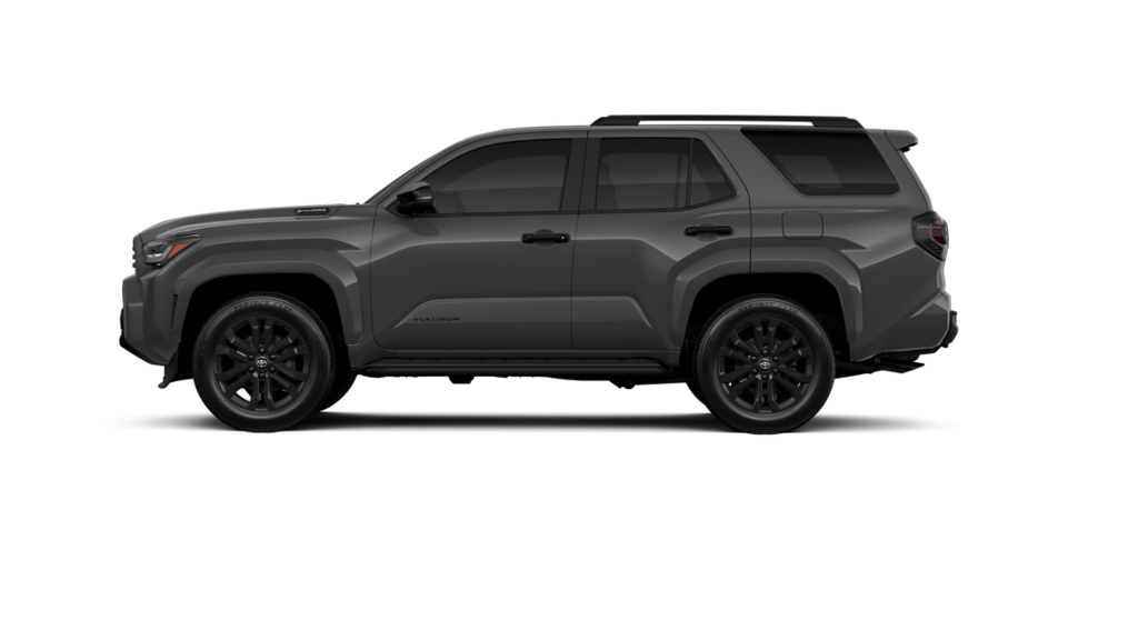 - Dark-chrome tri-bar grille; gloss-black mirror caps and door handles; color-keyed overfenders and rear spoiler; gloss-black "platinum" and "4runner" badges.