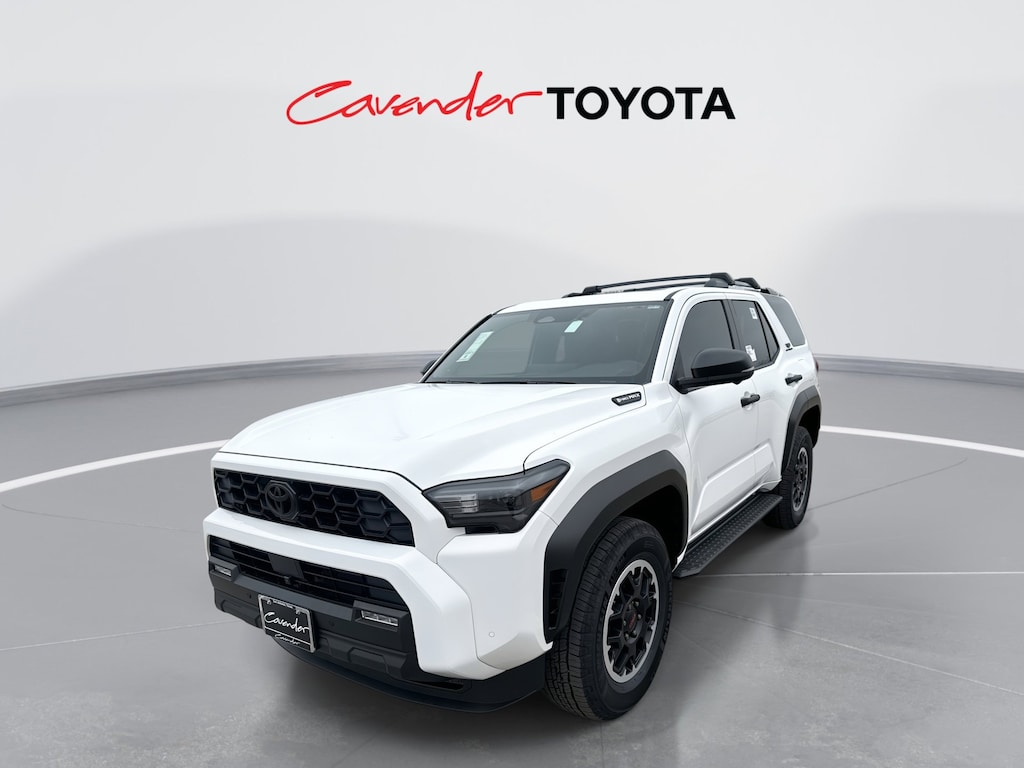 Welcome to Cavender Toyota, a Cavender Auto Family dealership. This vehicle is located at 5730 NW Loop 410, San Antonio, TX 78238. Here at Cavender, we build relationships based on trust and integrity to exceed your expectations in your ownership experience. Quite simply, we strive to Make Confidence Happen! So stop by and allow us to serve your automotive needs; we would love to meet you.Ice Cap 2026 Toyota 4Runner i-FORCE MAX Hybrid TRD Off Road Premium 4WD 8-Speed Automatic 2.4L 4-CylinderFeatures: Tow Technology Package (Inside Rear-View Mirror), TRD Offroad Premium Package, 2.4L 4-Cylinder, 15 Speakers, 4-Wheel Disc Brakes, ABS brakes, Air Conditioning, Alloy wheels, AM/FM radio: SiriusXM, Anti-whiplash front head restraints, Apple CarPlay/Android Auto, Auto High-beam Headlights, Automatic temperature control, Brake assist, Bumpers: body-color, Color Keyed Bodyside Molding, Driver door bin, Driver vanity mirror, Dual front impact airbags, Dual front side impact airbags, Electronic Stability Control, Emergency communication system: Safety Connect (1-year trial), Exterior Parking Camera Rear, Front anti-roll bar, Front Bucket Seats, Front Center Armrest, Front dual zone A/C, Front fog lights, Front reading lights, Front wheel independent suspension, Heated and Ventilated Front Bucket Seats, Heated door mirrors, Heated front seats, Heated steering wheel, Illuminated entry, Interior D-Pillar Cargo Lights, Knee airbag, Leather Shift Knob, Leather steering wheel, Low tire pressure warning, Memory seat, Moonroof, Navigation System, Occupant sensing airbag, Outside temperature display, Overhead airbag, Overhead console, Panic alarm, Passenger door bin, Passenger vanity mirror, Power door mirrors, Power driver seat, Power passenger seat, Power steering, Power windows, Prewired Auxiliary Switches, Radio: 14" Audio, Rear anti-roll bar, Rear seat center armrest, Rear side impact airbag, Rear window defroster, Rear window wiper, Remote keyless entry, Security system, SofTex Seat Trim, Speed control, Speed-sensing steering, Split folding rear seat, Spoiler, Steering wheel mounted audio controls, Tachometer, Telescoping steering wheel, Tilt steering wheel, Traction control, Trip computer, Variably intermittent wipers, Ventilated front seats, and Wheels: 18" Matte-Black Painted Alloy.