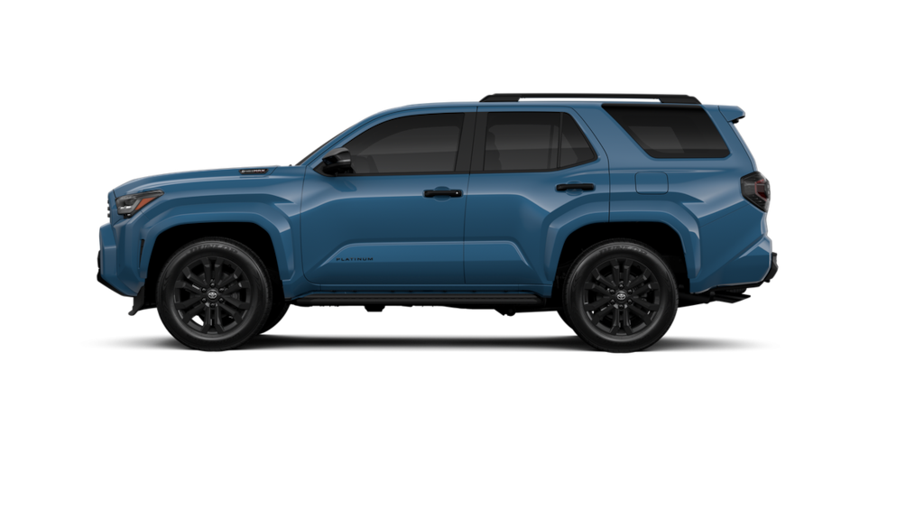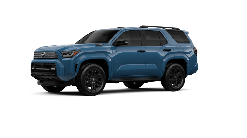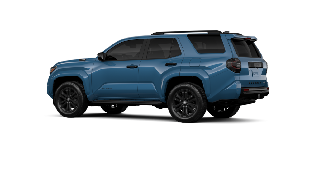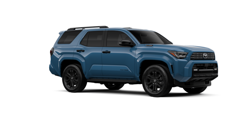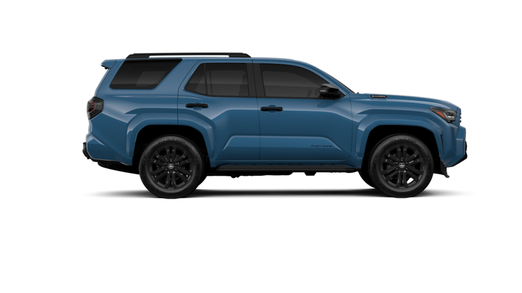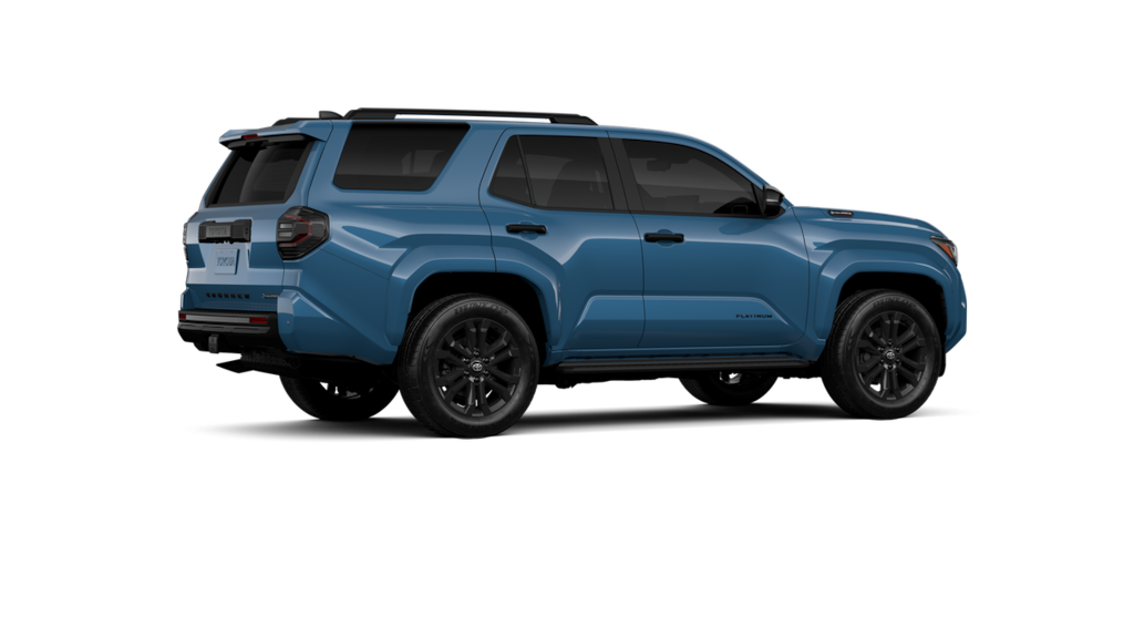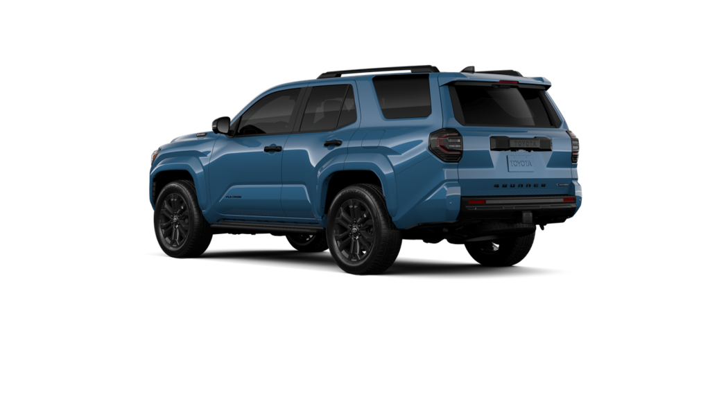 - Dark-chrome tri-bar grille; gloss-black mirror caps and door handles; color-keyed overfenders and rear spoiler; gloss-black "platinum" and "4runner" badges.