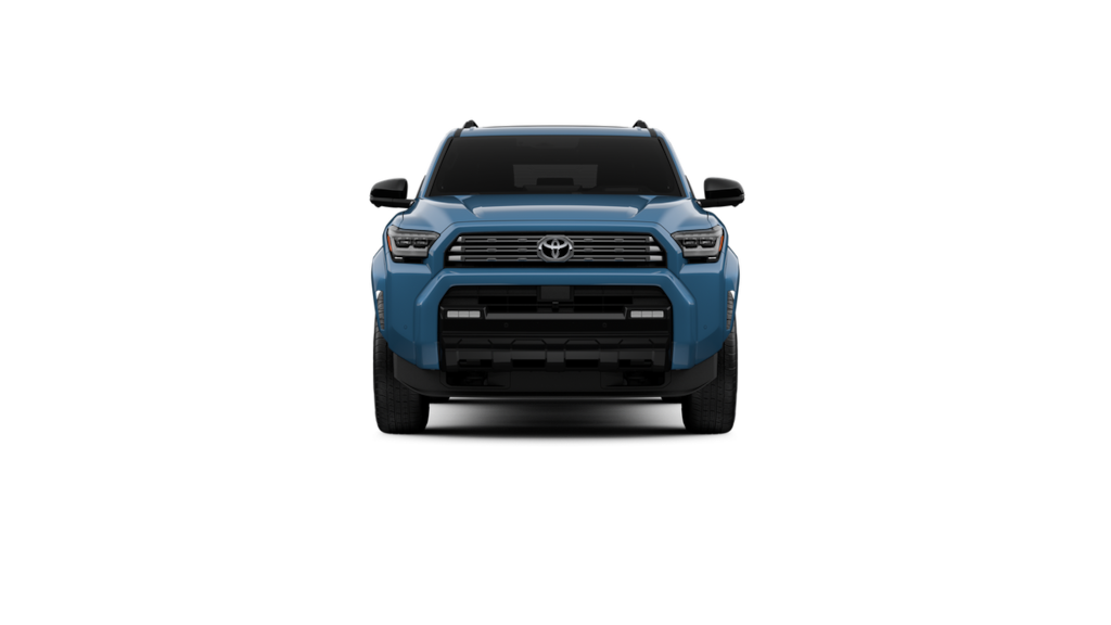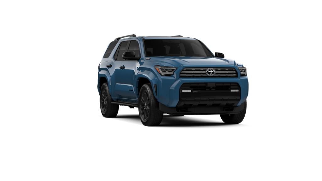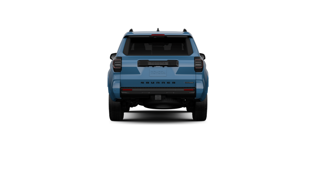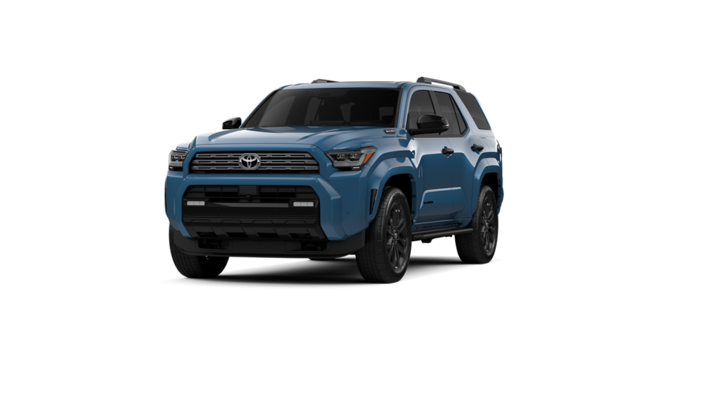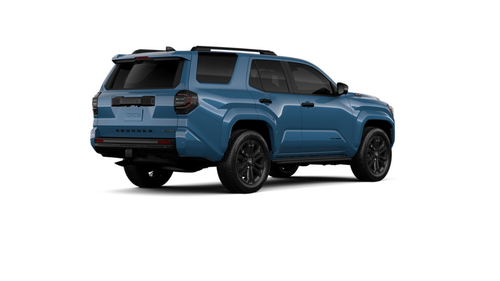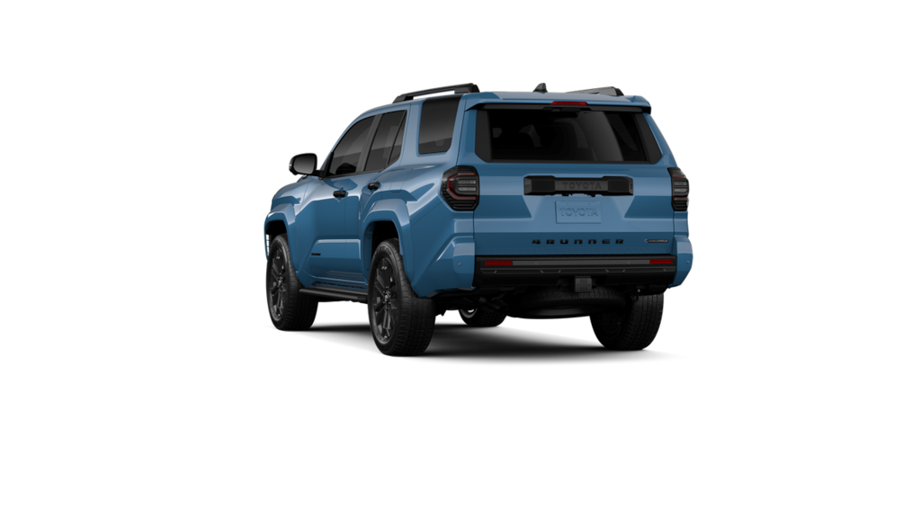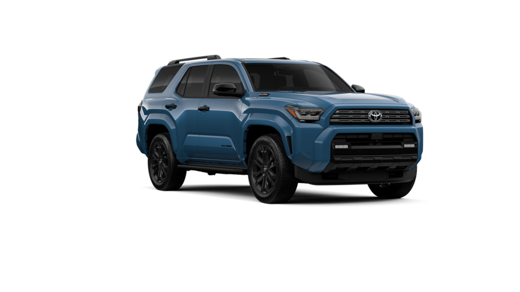 - Dark-chrome tri-bar grille; gloss-black mirror caps and door handles; color-keyed overfenders and rear spoiler; gloss-black "platinum" and "4runner" badges.