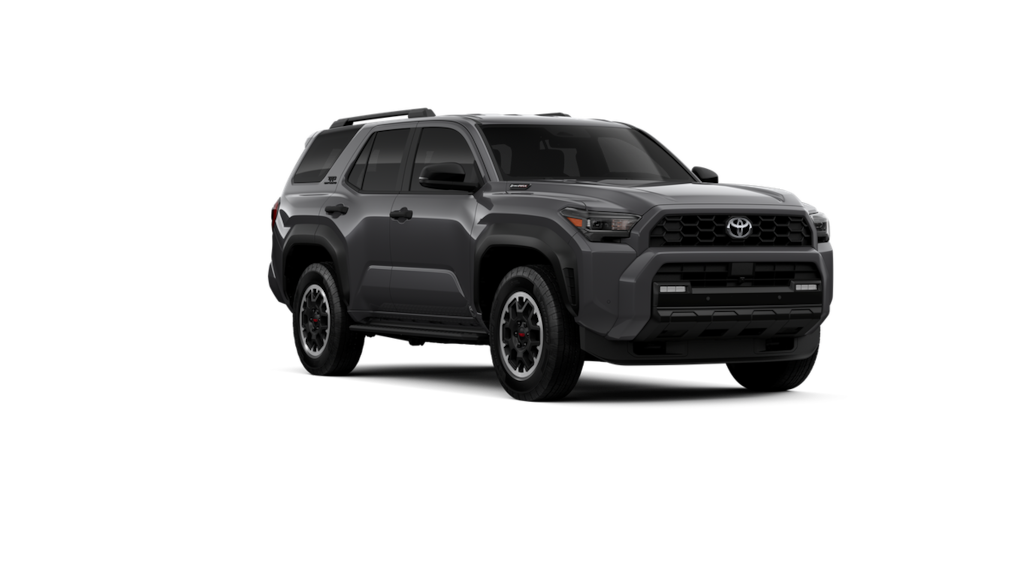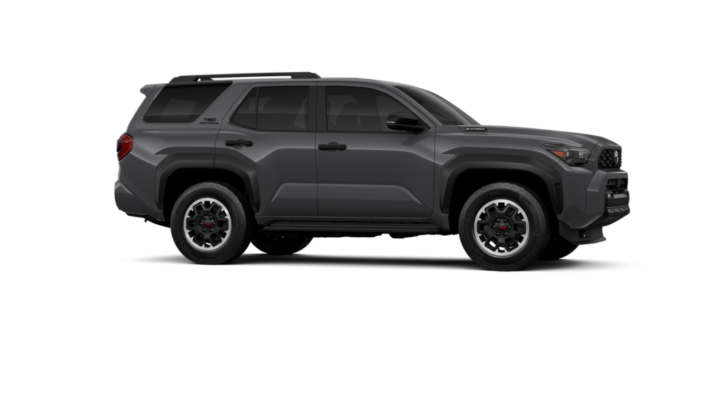 - Black honeycomb-style grille, mirror caps, door handles and overfenders; color-keyed rear spoiler; black "trd off road" and "4runner" badges.