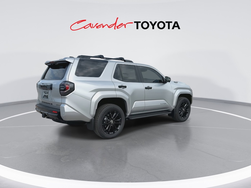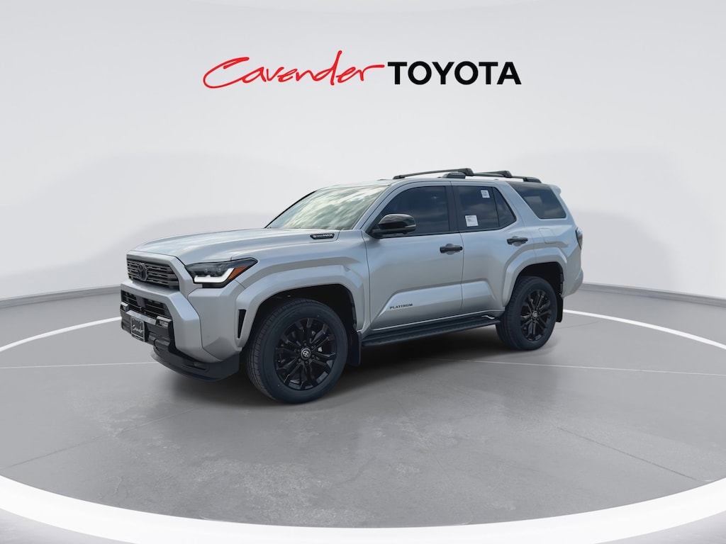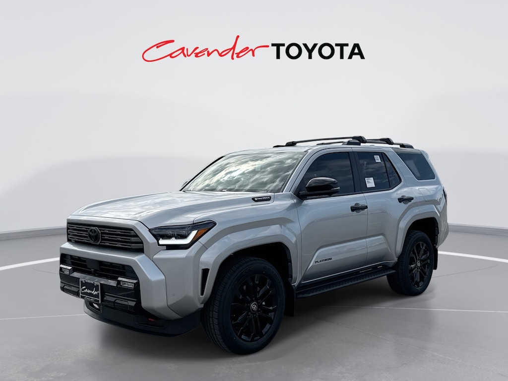 Welcome to Cavender Toyota, a Cavender Auto Family dealership. This vehicle is located at 5730 NW Loop 410, San Antonio, TX 78238. Here at Cavender, we build relationships based on trust and integrity to exceed your expectations in your ownership experience. Quite simply, we strive to Make Confidence Happen! So stop by and allow us to serve your automotive needs; we would love to meet you.Cutting Edge 2026 Toyota 4Runner i-FORCE MAX Hybrid Platinum 4WD 8-Speed Automatic 2.4L 4-CylinderFeatures: Platinum, 2.4L 4-Cylinder, 15 Speakers, 4-Wheel Disc Brakes, ABS brakes, Air Conditioning, Alloy wheels, AM/FM radio: SiriusXM, Anti-whiplash front head restraints, Apple CarPlay/Android Auto, Auto High-beam Headlights, Auto-dimming Rear-View mirror, Automatic temperature control, Brake assist, Bumpers: body-color, Compass, Delay-off headlights, Driver door bin, Driver vanity mirror, Dual front impact airbags, Dual front side impact airbags, Electronic Stability Control, Emergency communication system: Safety Connect (1-year trial), Exterior Parking Camera Rear, Front and Rear Molded Black 4Runner Mudguards, Front anti-roll bar, Front Bucket Seats, Front Center Armrest, Front dual zone A/C, Front fog lights, Front reading lights, Front Red Tow Hooks Upgrade, Front wheel independent suspension, Fully automatic headlights, Heads-Up Display, Heated and Ventilated Front Bucket Seats, Heated door mirrors, Heated front seats, Heated rear seats, Heated steering wheel, Illuminated entry, Interior D-Pillar Cargo Lights, Knee airbag, Leather Shift Knob, Leather steering wheel, LED Liftgate Light, Low tire pressure warning, Memory seat, Moonroof, Navigation System, Occupant sensing airbag, Outside temperature display, Overhead airbag, Overhead console, Panic alarm, Passenger door bin, Passenger vanity mirror, Power door mirrors, Power driver seat, Power passenger seat, Power steering, Power windows, Radio: 14" Audio, Rain sensing wipers, Rear anti-roll bar, Rear seat center armrest, Rear side impact airbag, Rear window defroster, Rear window wiper, Remote keyless entry, Security system, Semi-Aniline Leather Seat Trim, Speed control, Speed-sensing steering, Split folding rear seat, Spoiler, Steering wheel mounted audio controls, Tachometer, Telescoping steering wheel, Tilt steering wheel, Traction control, Trip computer, Turn signal indicator mirrors, Variably intermittent wipers, Ventilated front seats, and Wheels: 20" Gloss-Black Painted Alloy.