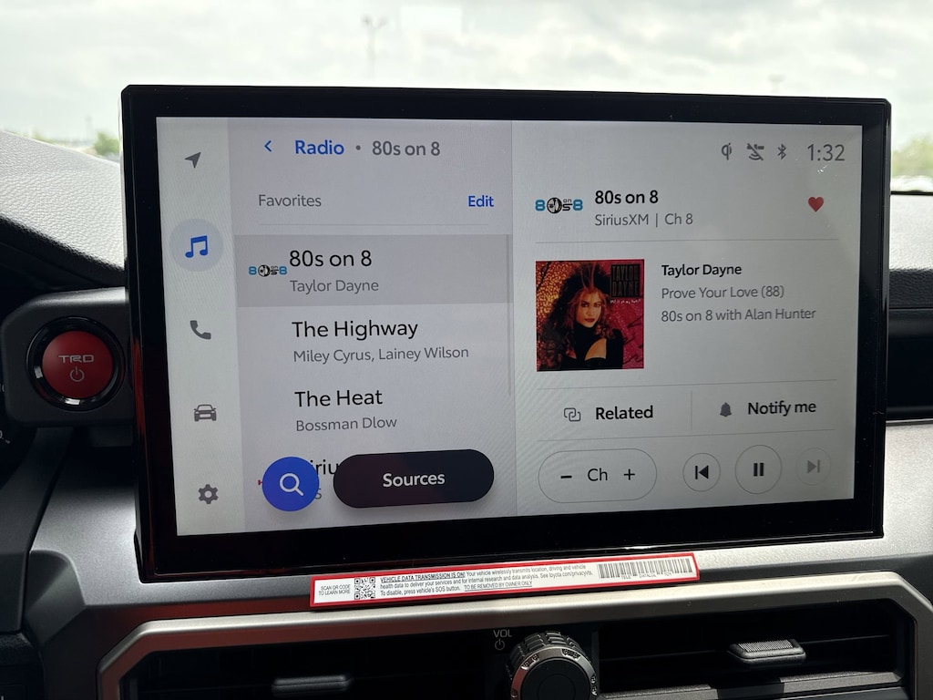 - 14-in. Audio multimedia display with 14-speaker jbl®premium audio system including jbl®flex portable. Bluetooth. ®speaker, subwoofer and amplifier, wireless apple carplay®& android auto™compatibility, siriusxm®3-month trial. See toyota.Com/connected-services for details.Jbl® is a registered trademark of harman international industries, inc.Jbl® is a registered trademark of harman international industries, inc.A compatible. Bluetooth. ®-enabled phone must first be paired. Phone performance depends on software, coverage and carrier. The. Bluetooth. ® word mark and logos are registered trademarks of bluetooth sig, inc. Use of such marks by toyota is under license.Apple carplay® requires a compatible iphone® with an active data plan. Check compatibility at. Https://www.Apple.Com/ios/carplay/. . Operability depends on network availability, a cellular connection and gps signal. Services vary by vehicle and are subject to change at any time without notice. Data charges may apply. To learn more, go to. Https://www.Toyota.Com/audio-multimedia/. . To learn more about toyota connected services data collection, use, sharing and retention practices, please visit. Https://www.Toyota.Com/support/privacy-notice/. . Apple carplay® is a registered trademark of apple inc.Wireless use of android auto requires a compatible android 11.0+ phone and compatible active data plan. Check. G.Co/androidauto/requirements. For compatibility. Operability depends on network availability, a cellular connection, and gps signal. Services vary by vehicle and are subject to change at any time without notice. Data charges may apply. To learn more, go to. Https://www.Toyota.Com/audio-multimedia/. . To learn more about toyota's connected services data collection, use, sharing, and retention practices, please visit. Https://www.Toyota.Com/support/privacy-notice/. . Google, android, android auto, google maps, and other marks are trademarks of google llc. Compatible android phone and compatible active data plan required.Service will automatically stop at the end of your trial subscription period unless you decide to continue service. Trial is non-transferable. If you do not wish to enjoy your trial, you can cancel by calling the number below. All siriusxm services require a subscription, each sold separately by siriusxm after the trial period. Service subject to the siriusxm customer agreement and privacy policy, visit siriusxm.Com for complete terms and how to cancel which includes online methods or calling 1-866-635-2349. Some services and features are subject to device capabilities and location availability. Satellite service not available in ak & hi. Content varies by siriusxm subscription plan. All fees, content and features are subject to change. Siriusxm and related logos are trademarks of sirius xm radio inc. And its respective subsidiaries.