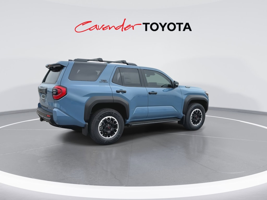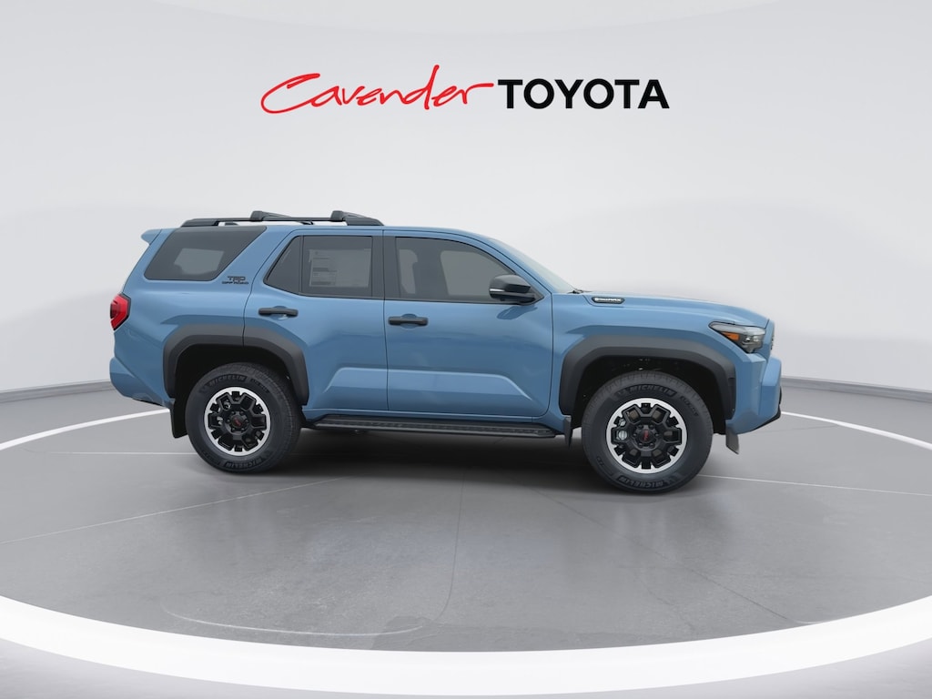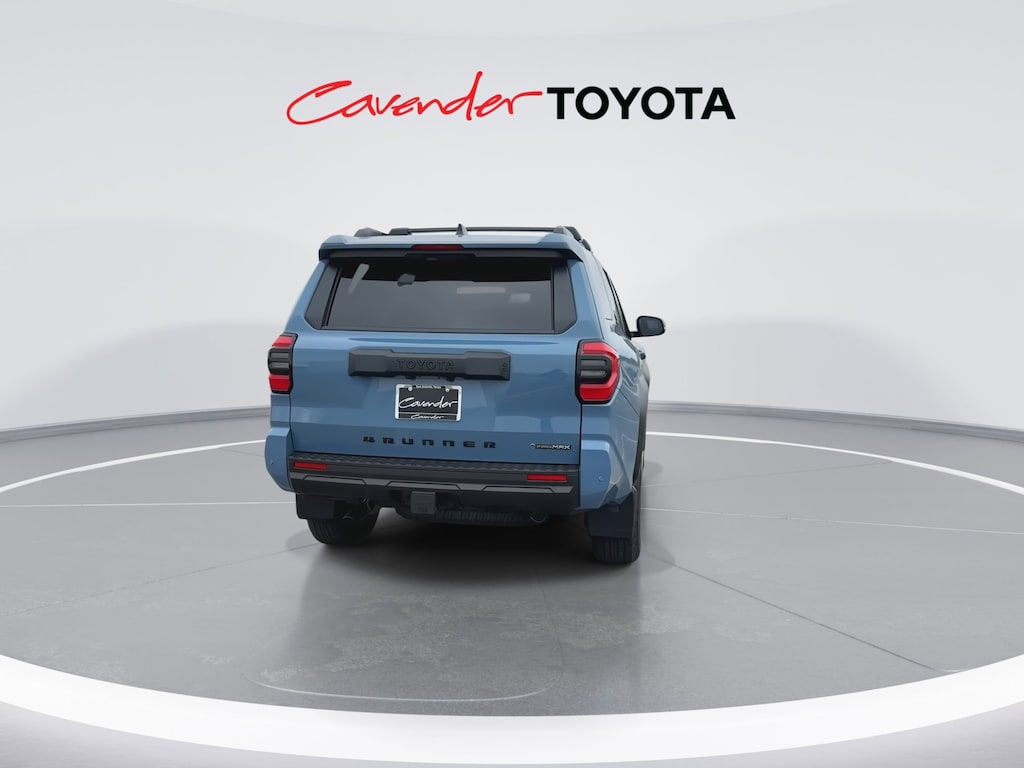 Welcome to Cavender Toyota, a Cavender Auto Family dealership. This vehicle is located at 5730 NW Loop 410, San Antonio, TX 78238. Here at Cavender, we build relationships based on trust and integrity to exceed your expectations in your ownership experience. Quite simply, we strive to Make Confidence Happen! So stop by and allow us to serve your automotive needs; we would love to meet you.Blue 2026 Toyota 4Runner i-FORCE MAX Hybrid TRD Off Road Premium 4WD 8-Speed Automatic 2.4L 4-CylinderFeatures: Tow Technology Package (Inside Rear-View Mirror), TRD Offroad Premium Package, 2.4L 4-Cylinder, 15 Speakers, 4-Wheel Disc Brakes, ABS brakes, Air Conditioning, Alloy wheels, AM/FM radio: SiriusXM, Anti-whiplash front head restraints, Apple CarPlay/Android Auto, Auto High-beam Headlights, Automatic temperature control, Brake assist, Bumpers: body-color, Driver door bin, Driver vanity mirror, Dual front impact airbags, Dual front side impact airbags, Electronic Stability Control, Emergency communication system: Safety Connect (1-year trial), Exterior Parking Camera Rear, Front and Rear Molded Black 4Runner Mudguards, Front anti-roll bar, Front Bucket Seats, Front Center Armrest, Front dual zone A/C, Front fog lights, Front reading lights, Front Red Tow Hooks Upgrade, Front wheel independent suspension, Heated and Ventilated Front Bucket Seats, Heated door mirrors, Heated front seats, Heated steering wheel, Illuminated entry, Interior D-Pillar Cargo Lights, Knee airbag, Leather Shift Knob, Leather steering wheel, Low tire pressure warning, Memory seat, Moonroof, Navigation System, Occupant sensing airbag, Outside temperature display, Overhead airbag, Overhead console, Panic alarm, Passenger door bin, Passenger vanity mirror, Power door mirrors, Power driver seat, Power passenger seat, Power steering, Power windows, Prewired Auxiliary Switches, Radio: 14" Audio, Rear anti-roll bar, Rear seat center armrest, Rear side impact airbag, Rear window defroster, Rear window wiper, Remote keyless entry, Security system, SofTex Seat Trim, Speed control, Speed-sensing steering, Split folding rear seat, Spoiler, Steering wheel mounted audio controls, Tachometer, Telescoping steering wheel, Tilt steering wheel, Traction control, Trip computer, Variably intermittent wipers, Ventilated front seats, and Wheels: 18" Matte-Black Painted Alloy.