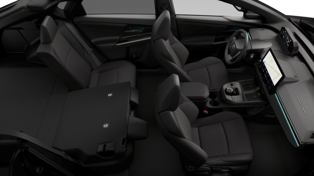 - 60/40 split, reclining fold-flat rear seats with center armrest and cup holders.