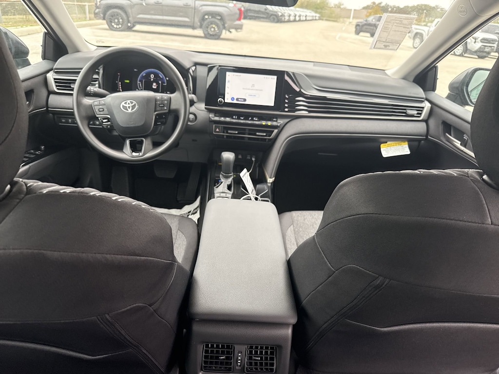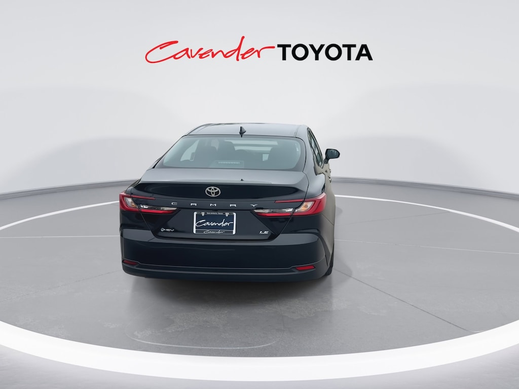 Welcome to Cavender Toyota, a Cavender Auto Family dealership. This vehicle is located at 5730 NW Loop 410, San Antonio, TX 78238. Here at Cavender, we build relationships based on trust and integrity to exceed your expectations in your ownership experience. Quite simply, we strive to Make Confidence Happen! So stop by and allow us to serve your automotive needs; we would love to meet you.Midnight Black 2026 Toyota Camry LE FWD eCVT 2.5L 4-Cylinder 16V DOHCFeatures: Convenience Package (Auto-Dimming Rearview Mirror with HomeLink and Smart Key System on Front Doors), Black Fabric Cloth, 4-Wheel Disc Brakes, 6 Speakers, ABS brakes, Air Conditioning, Alloy wheels, AM/FM radio: SiriusXM, Apple CarPlay/Android Auto, Auto High-beam Headlights, Automatic temperature control, Brake assist, Bumpers: body-color, Delay-off headlights, Driver door bin, Driver vanity mirror, Dual front impact airbags, Dual front side impact airbags, Electronic Stability Control, Emergency communication system: Safety Connect (5-year trial), Exterior Parking Camera Rear, Fabric Seat Trim, Four wheel independent suspension, Front anti-roll bar, Front Bucket Seats, Front Center Armrest, Front dual zone A/C, Front reading lights, Front Seats, Fully automatic headlights, Heated door mirrors, Heated Front Seats, Illuminated entry, Knee airbag, Low tire pressure warning, Mudguards, Occupant sensing airbag, Outside temperature display, Overhead airbag, Overhead console, Panic alarm, Passenger door bin, Passenger vanity mirror, Power door mirrors, Power steering, Power windows, Radio data system, Radio: 8" Toyota Audio Multimedia, Rear anti-roll bar, Rear seat center armrest, Rear window defroster, Remote keyless entry, Security system, Speed control, Speed-sensing steering, Split folding rear seat, Steering wheel mounted audio controls, Telescoping steering wheel, Tilt steering wheel, Traction control, Trip computer, Turn signal indicator mirrors, Variably intermittent wipers, and Wheels: 16" 10-Spoke Silver-Painted Alloy.