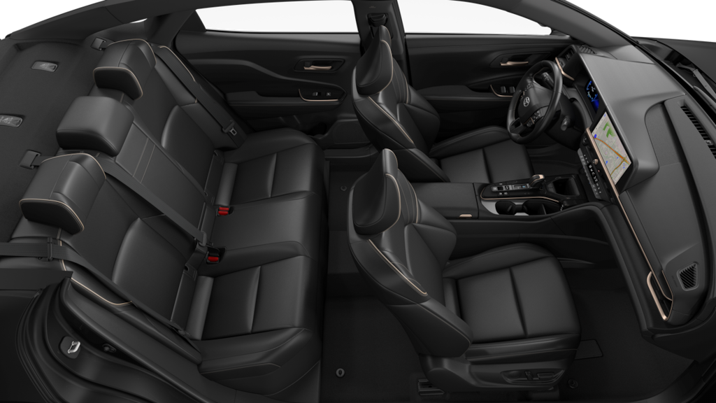 - Leather-trimmed front seats with seatback pockets; 8-way power-adjustable driver's seat with lumbar support; 8-way power-adjustable front passenger seat.