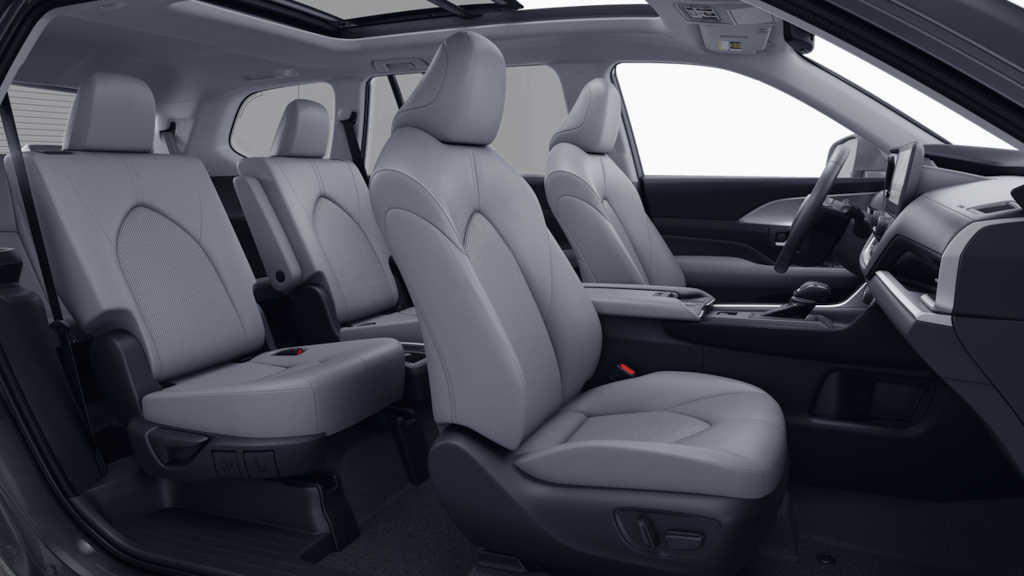• 7-passenger seating with second-row fold-down captain's chairs and fold-down inboard armrests, adjustable headrests and two cup holders mounted on the floor; and 60/40 split, fold-down third-row seats with sliding headrests and recline function.