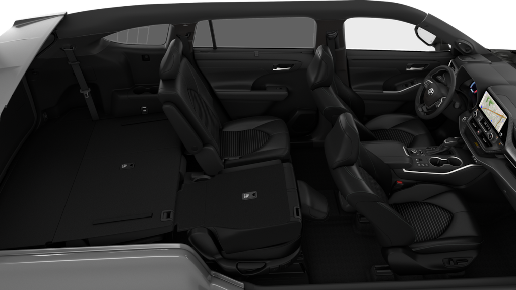 - 7-passenger seating with second-row fold-down captain's chairs and fold-down inboard armrests, adjustable headrests and two cup holders mounted on the floor; and 60/40 split, fold-flat third-row seats with sliding headrests and recline function.