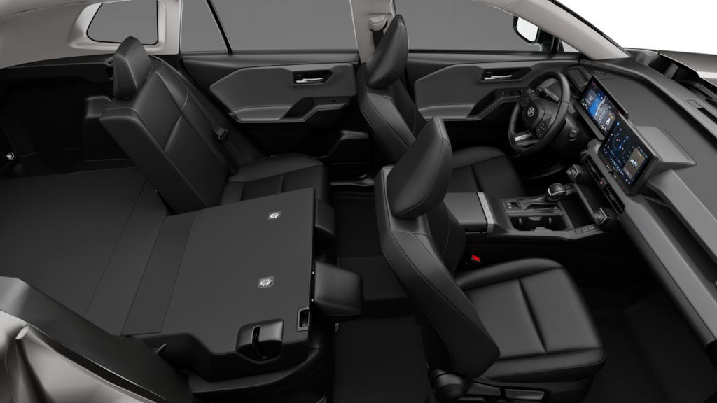 • 60/40 split reclining fold-flat rear seat with center armrest and cup holders.
