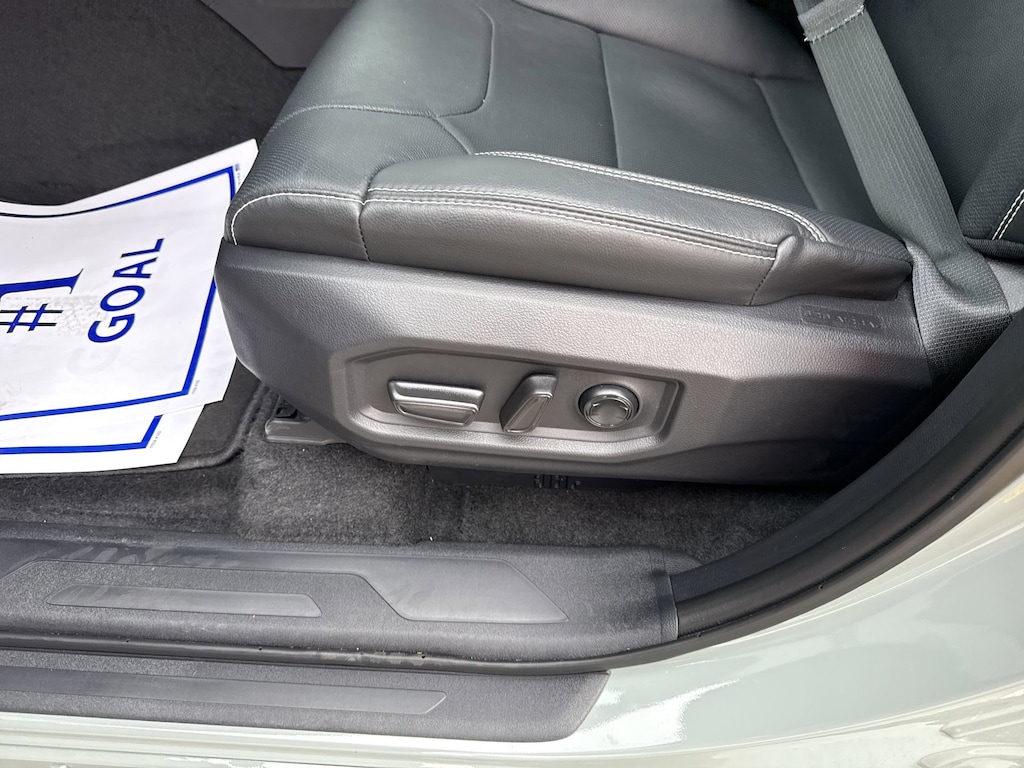 - Leather-trimmed seats with contrast stitching; 8-way power-adjustable driver and front passenger seats with 2-way power-adjustable lumbar support.