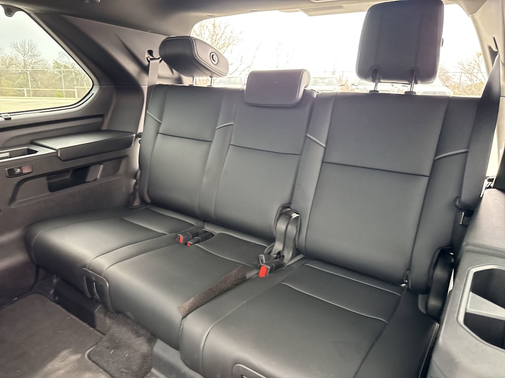 - Leather-trimmed 60/40 split, sliding, power-reclining,power fold-down third-row seats with adjustable headrests.Rear-seat leg rest may not fully raise based on height of passenger. Do not allow passengers to sit in a seat that has been fully or severely reclined while driving. This feature is intended for use only when the vehicle is parked. While the vehicle is being driven, all vehicle occupants should have the seatback upright, sit well back in the seat and properly wear the seatbelts provided. In the event of a collision, the more the seat is reclined, the greater the risk of death or personal injury. See. Owner’s manual. For additional limitations and details.