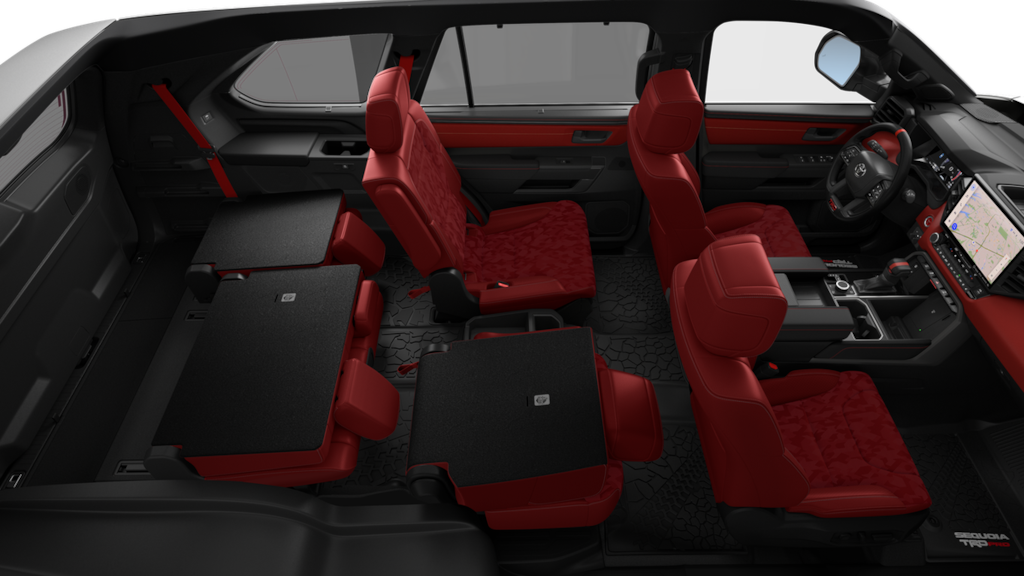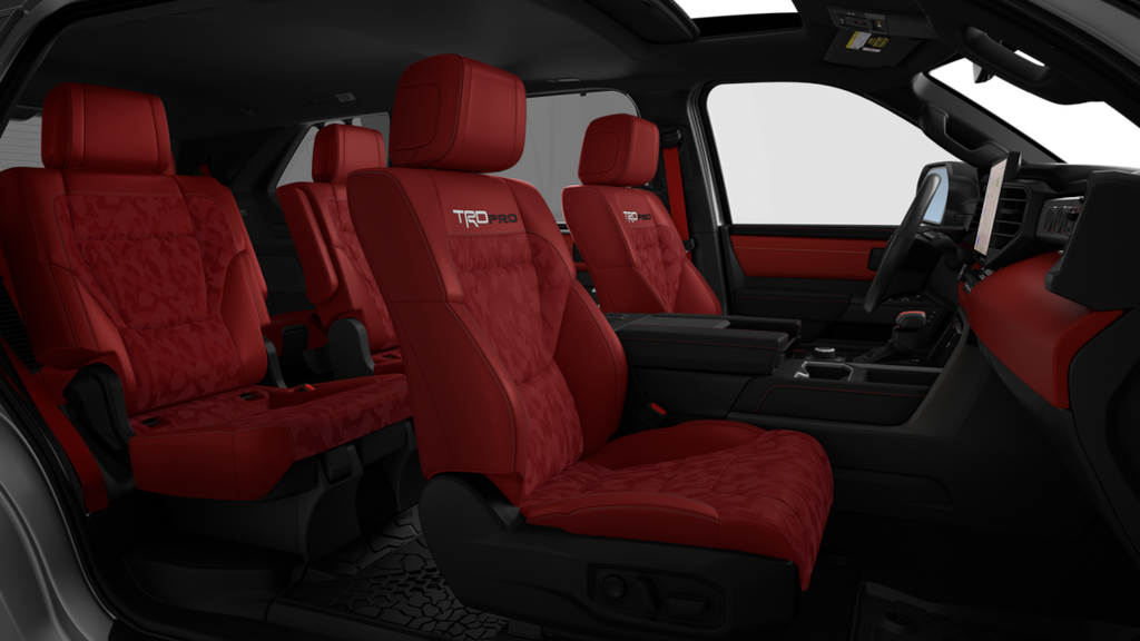 - Trd pro softex®-trimmed seats with contrast stitching and technical-camo-pattern inserts; 8-way power-adjustable driver and front passenger seats with 2-way power-adjustable lumbar support.