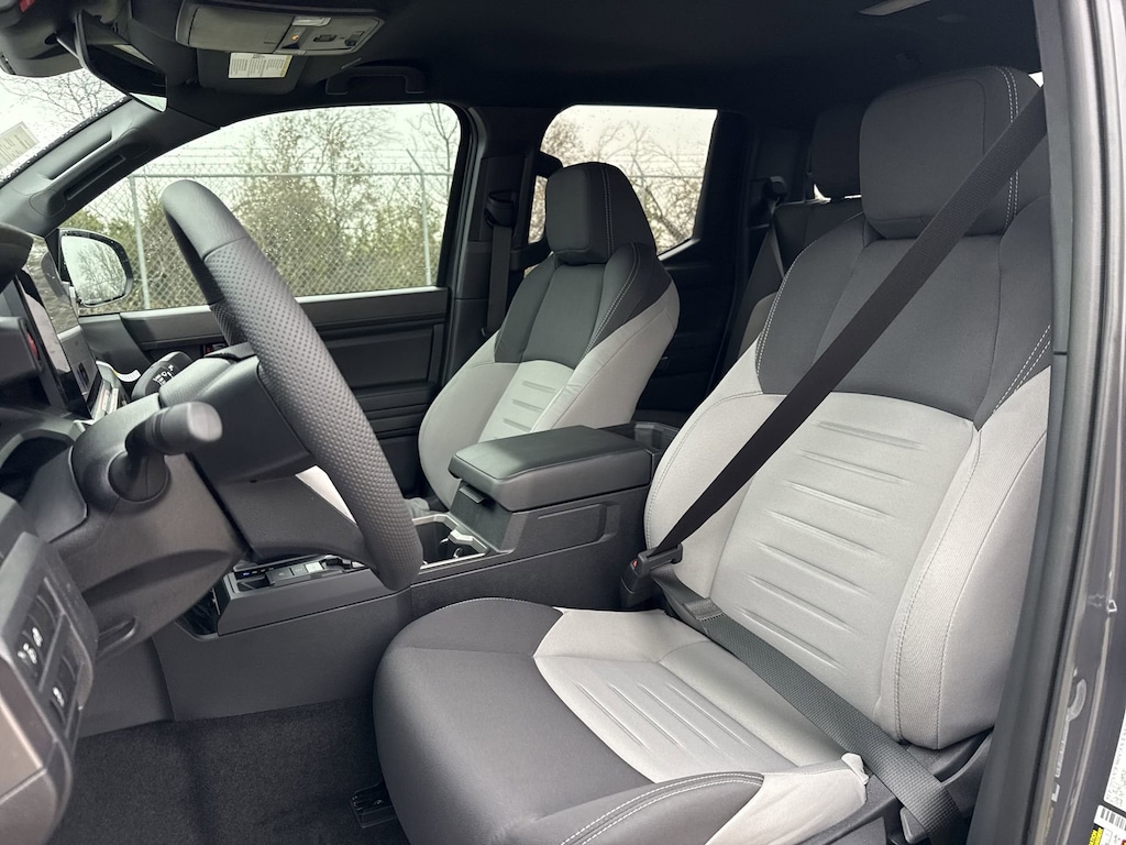 - Fabric-trimmed seats; 6-way manually adjustable driver and front passenger seats with 2-way power-adjustable lumbar support on driver's seat only.