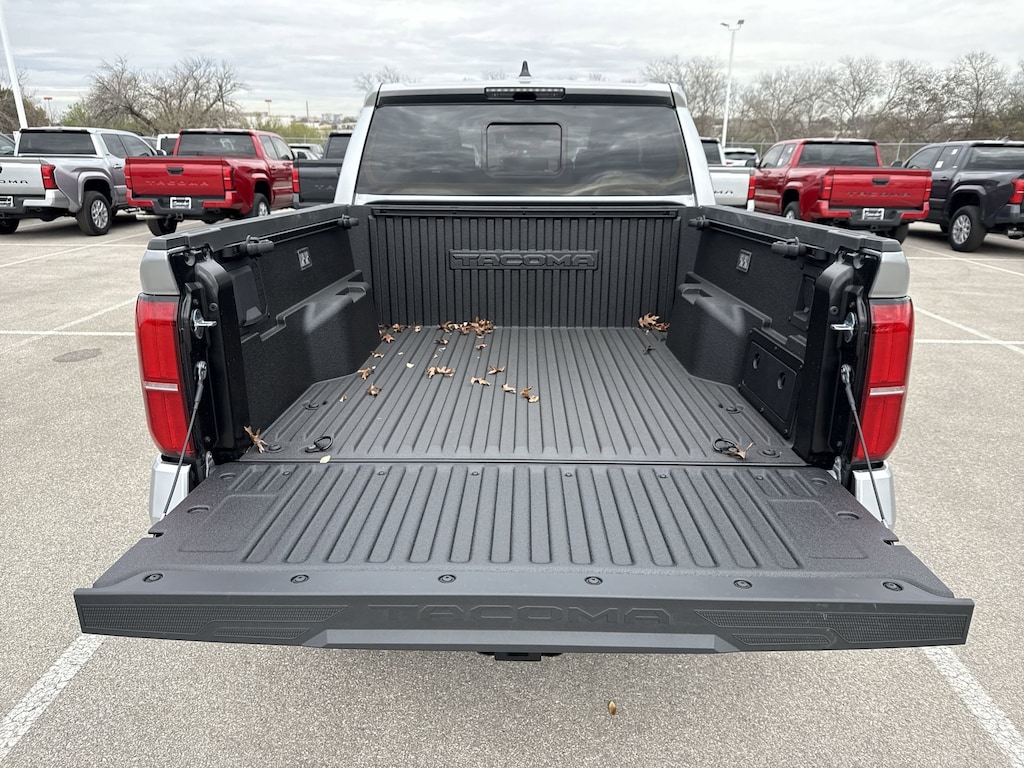 Welcome to Cavender Toyota, a Cavender Auto Family dealership. This vehicle is located at 5730 NW Loop 410, San Antonio, TX 78238. Here at Cavender, we build relationships based on trust and integrity to exceed your expectations in your ownership experience. Quite simply, we strive to Make Confidence Happen! So stop by and allow us to serve your automotive needs; we would love to meet you.Celestial Silver 2026 Toyota Tacoma TRD Sport RWD 8-Speed Automatic 2.4L 4-CylinderFeatures: TRD Sport Upgrade Package (8-Way Power Driver and Passenger Seat Adjusters, Heated Front Seats, Heated Leather-Trimmed Steering Wheel, Integrated Trailer Brake Controller, JBL Premium Audio, Power Horizontal Rear Window, Pre-Wire Accommodation (bed Power Port), and Smart Key w/Digital Key Technology), 3.583 Axle Ratio, 4-Wheel Disc Brakes, 6 Speakers, ABS brakes, Air Conditioning, Alloy wheels, AM/FM radio: SiriusXM, Anti-whiplash front head restraints, Apple CarPlay/Android Auto, Auto High-beam Headlights, Auto-dimming Rear-View mirror, Automatic temperature control, Bed Scene Lighting, Bed Step, Brake assist, Bumpers: body-color, Driver door bin, Driver vanity mirror, Dual front impact airbags, Dual front side impact airbags, Electronic Stability Control, Emergency communication system: Safety Connect (up to 10-year trial subscription), Exterior Parking Camera Rear, Fabric Seat Trim, Four wheel independent suspension, Front anti-roll bar, Front Bucket Seats, Front Center Armrest, Front fog lights, Front reading lights, Fully automatic headlights, Heated door mirrors, Illuminated entry, Knee airbag, Leather Shift Knob, Leather steering wheel, Low tire pressure warning, Occupant sensing airbag, Outside temperature display, Overhead airbag, Overhead console, Panic alarm, Passenger door bin, Passenger vanity mirror, Power door mirrors, Power steering, Power windows, Radio: 8" Toyota Audio Multimedia, Rear step bumper, Rear window defroster, Remote keyless entry, Removable Predator Step, Security system, Speed control, Speed-sensing steering, Split folding rear seat, Spray-on Bed Liner, Steering wheel mounted audio controls, Tachometer, Telescoping steering wheel, Tilt steering wheel, Traction control, Trip computer, Turn signal indicator mirrors, Variably intermittent wipers, and Wheels: 18" TRD Sport Alloy.