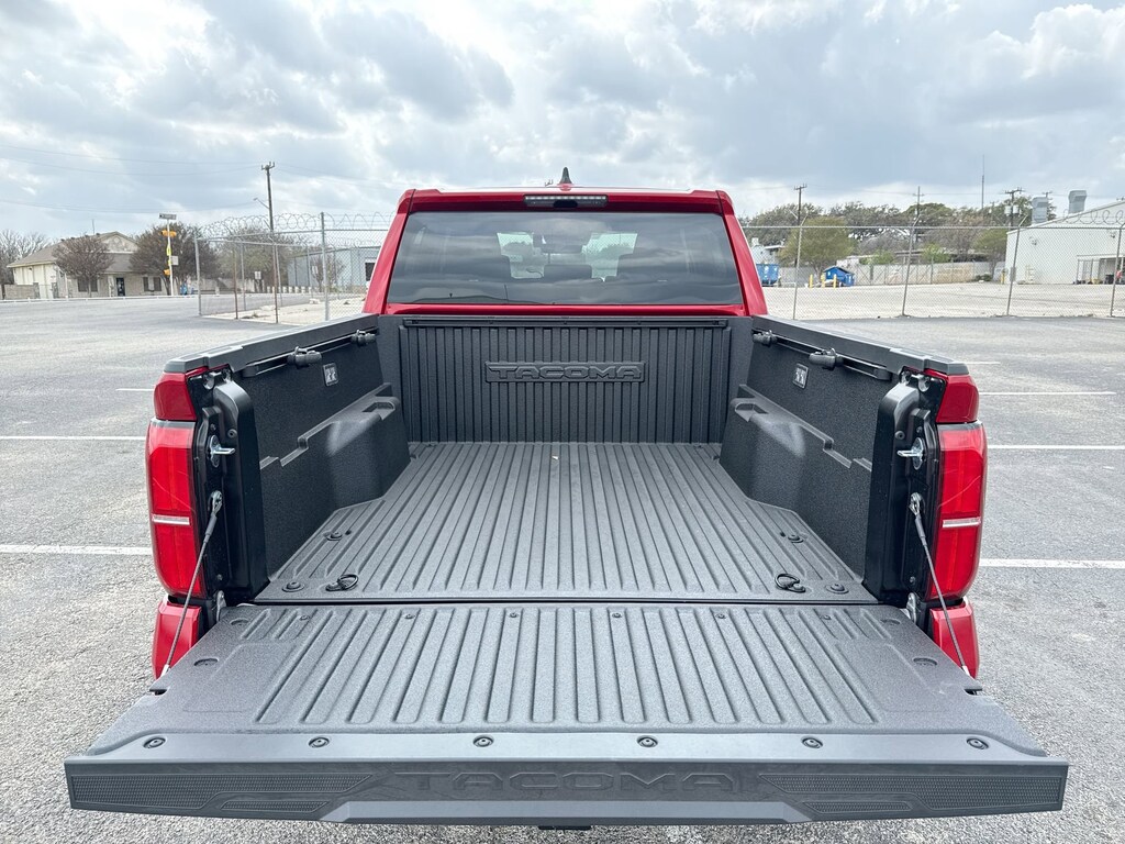 Welcome to Cavender Toyota, a Cavender Auto Family dealership. This vehicle is located at 5730 NW Loop 410, San Antonio, TX 78238. Here at Cavender, we build relationships based on trust and integrity to exceed your expectations in your ownership experience. Quite simply, we strive to Make Confidence Happen! So stop by and allow us to serve your automotive needs; we would love to meet you.Red 2026 Toyota Tacoma TRD Sport RWD 8-Speed Automatic 2.4L 4-CylinderFeatures: TRD Sport Package, 3.583 Axle Ratio, 4-Wheel Disc Brakes, 6 Speakers, ABS brakes, Air Conditioning, Alloy wheels, AM/FM radio: SiriusXM, Anti-whiplash front head restraints, Apple CarPlay/Android Auto, Auto High-beam Headlights, Auto-dimming Rear-View mirror, Automatic temperature control, Bed Step, Brake assist, Bumpers: body-color, Driver door bin, Driver vanity mirror, Dual front impact airbags, Dual front side impact airbags, Electronic Stability Control, Emergency communication system: Safety Connect (up to 10-year trial subscription), Exterior Parking Camera Rear, Fabric Seat Trim, Four wheel independent suspension, Front anti-roll bar, Front Bucket Seats, Front Center Armrest, Front fog lights, Front reading lights, Fully automatic headlights, Heated door mirrors, Illuminated entry, Knee airbag, Leather Shift Knob, Leather steering wheel, Low tire pressure warning, Occupant sensing airbag, Outside temperature display, Overhead airbag, Overhead console, Panic alarm, Passenger door bin, Passenger vanity mirror, Power door mirrors, Power steering, Power windows, Radio: 8" Toyota Audio Multimedia, Radio: Premium Audio with 14" Display, Rear step bumper, Rear window defroster, Remote keyless entry, Removable Predator Step, Security system, Speed control, Speed-sensing steering, Split folding rear seat, Spray-on Bed Liner, Steering wheel mounted audio controls, Tachometer, Telescoping steering wheel, Tilt steering wheel, Traction control, Trip computer, Turn signal indicator mirrors, Variably intermittent wipers, and Wheels: 18" TRD Sport Alloy.