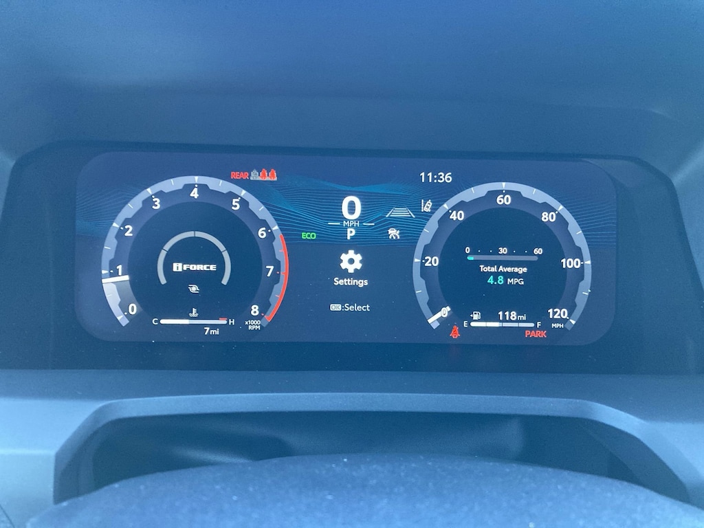 - 12.3-in. Digital gauge cluster with selectable gauges, driver assist, vehicle/trip information, and warning messages.