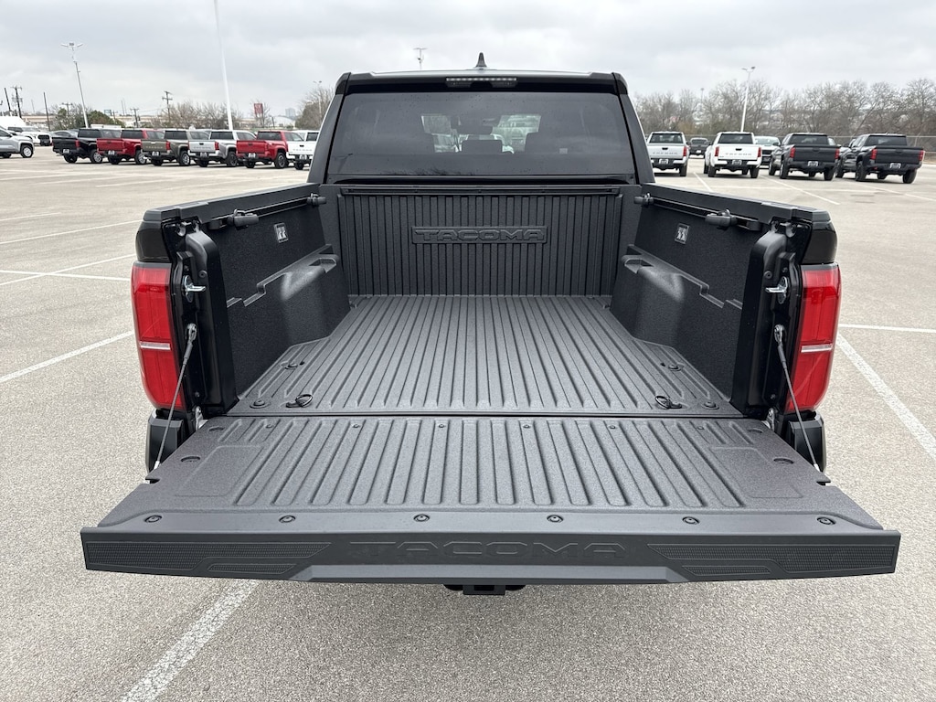 Welcome to Cavender Toyota, a Cavender Auto Family dealership. This vehicle is located at 5730 NW Loop 410, San Antonio, TX 78238. Here at Cavender, we build relationships based on trust and integrity to exceed your expectations in your ownership experience. Quite simply, we strive to Make Confidence Happen! So stop by and allow us to serve your automotive needs; we would love to meet you.Black 2026 Toyota Tacoma SR5 4WD 8-Speed Automatic 2.4L 4-CylinderFeatures: 4WD, 3.583 Axle Ratio, 4-Wheel Disc Brakes, 6 Speakers, ABS brakes, Air Conditioning, Alloy wheels, AM/FM radio: SiriusXM, Anti-whiplash front head restraints, Apple CarPlay/Android Auto, Auto High-beam Headlights, Auto-dimming Rear-View mirror, Brake assist, Bumpers: body-color, Driver door bin, Dual front impact airbags, Dual front side impact airbags, Electronic Stability Control, Emergency communication system: Safety Connect (up to 10-year trial subscription), Exterior Parking Camera Rear, Fabric Seat Trim, Four wheel independent suspension, Front anti-roll bar, Front Bucket Seats, Front Center Armrest, Front fog lights, Front reading lights, Fully automatic headlights, Heated door mirrors, Illuminated entry, JBL Premium Audio, Knee airbag, Low tire pressure warning, Occupant sensing airbag, Outside temperature display, Overhead airbag, Overhead console, Panic alarm, Passenger door bin, Power door mirrors, Power steering, Power windows, Radio: 8" Toyota Audio Multimedia, Rear step bumper, Rear window defroster, Remote keyless entry, Speed control, Speed-sensing steering, Split folding rear seat, Spray-on Bed Liner, Steering wheel mounted audio controls, Tachometer, Telescoping steering wheel, Tilt steering wheel, Traction control, Trip computer, Variably intermittent wipers, and Wheels: 17" Styled Alloy.