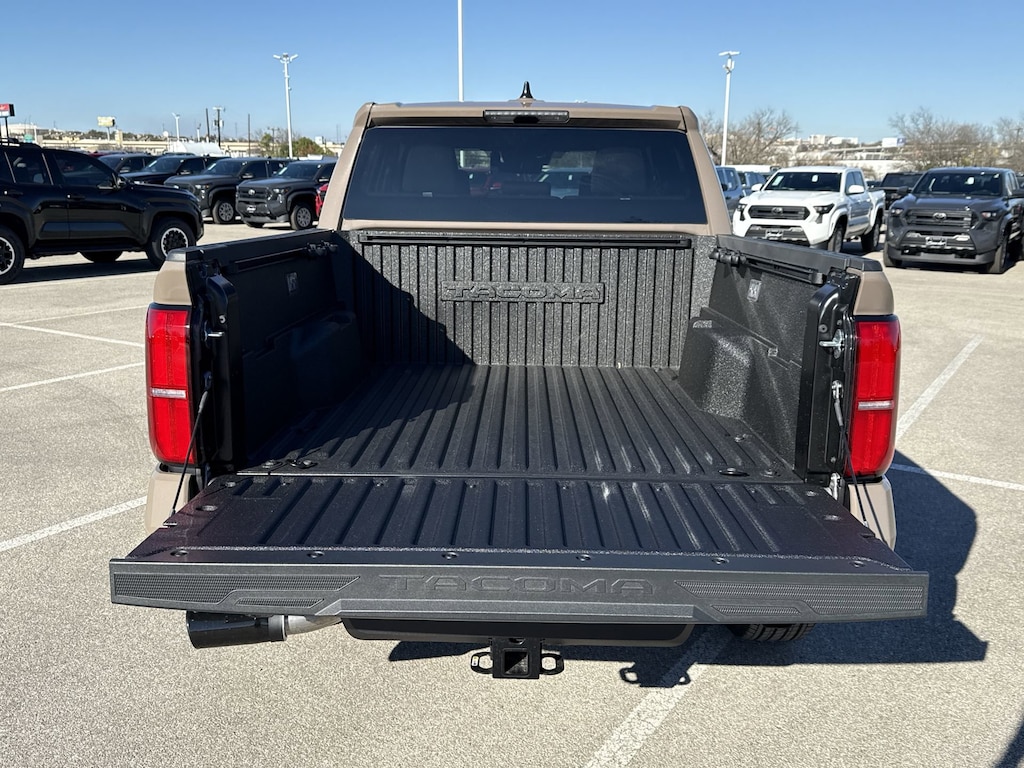 Welcome to Cavender Toyota, a Cavender Auto Family dealership. This vehicle is located at 5730 NW Loop 410, San Antonio, TX 78238. Here at Cavender, we build relationships based on trust and integrity to exceed your expectations in your ownership experience. Quite simply, we strive to Make Confidence Happen! So stop by and allow us to serve your automotive needs; we would love to meet you.Mudbath 2026 Toyota Tacoma TRD Sport RWD 8-Speed Automatic 2.4L 4-CylinderFeatures: TRD Sport Package, 3.583 Axle Ratio, 4-Wheel Disc Brakes, 6 Speakers, ABS brakes, Air Conditioning, Alloy wheels, AM/FM radio: SiriusXM, Anti-whiplash front head restraints, Apple CarPlay/Android Auto, Auto High-beam Headlights, Auto-dimming Rear-View mirror, Automatic temperature control, Bed Step, Brake assist, Bumpers: body-color, Driver door bin, Driver vanity mirror, Dual front impact airbags, Dual front side impact airbags, Electronic Stability Control, Emergency communication system: Safety Connect (up to 10-year trial subscription), Exterior Parking Camera Rear, Fabric Seat Trim, Four wheel independent suspension, Front anti-roll bar, Front Bucket Seats, Front Center Armrest, Front fog lights, Front reading lights, Fully automatic headlights, Heated door mirrors, Illuminated entry, Knee airbag, Leather Shift Knob, Leather steering wheel, Low tire pressure warning, Occupant sensing airbag, Outside temperature display, Overhead airbag, Overhead console, Panic alarm, Passenger door bin, Passenger vanity mirror, Power door mirrors, Power steering, Power windows, Radio: 8" Toyota Audio Multimedia, Radio: Premium Audio with 14" Display, Rear step bumper, Rear window defroster, Remote keyless entry, Removable Predator Step, Security system, Speed control, Speed-sensing steering, Split folding rear seat, Spray-on Bed Liner, Steering wheel mounted audio controls, Tachometer, Telescoping steering wheel, Tilt steering wheel, Traction control, Trip computer, Turn signal indicator mirrors, Variably intermittent wipers, and Wheels: 18" TRD Sport Alloy.