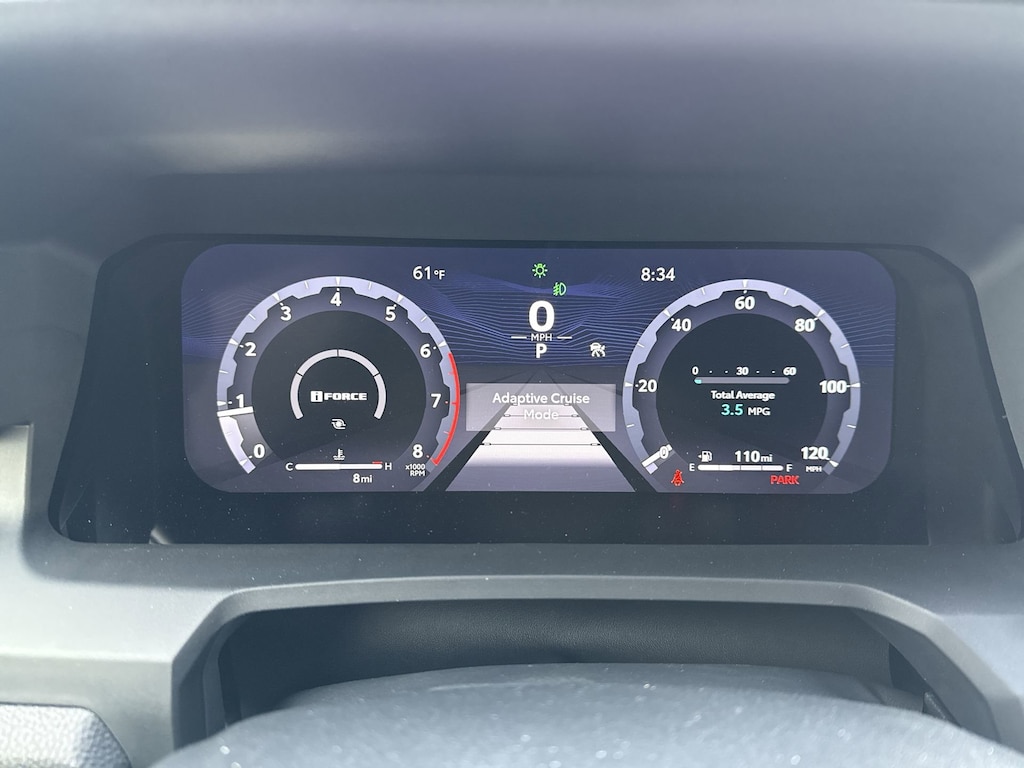 - 12.3-in. Digital gauge cluster with selectable gauges, driver assist, vehicle/trip information, and warning messages.
