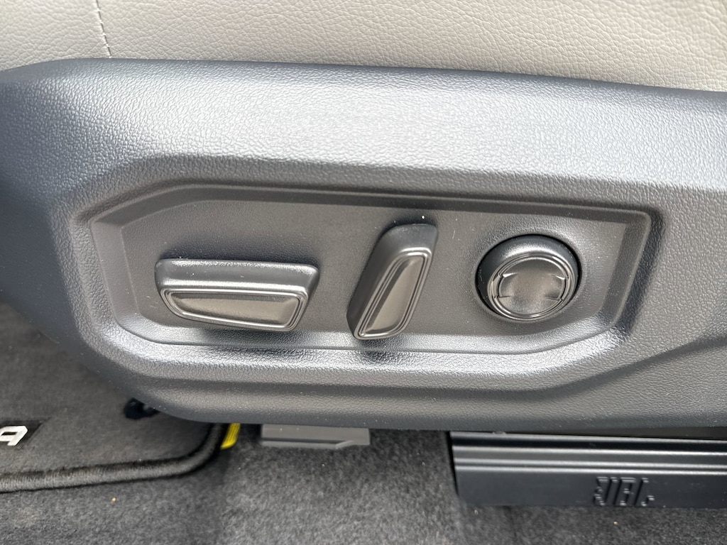 - Leather-trimmed seats with contrast stitching; 8-way power-adjustable driver and front passenger seats with power-adjustable lumbar support.
