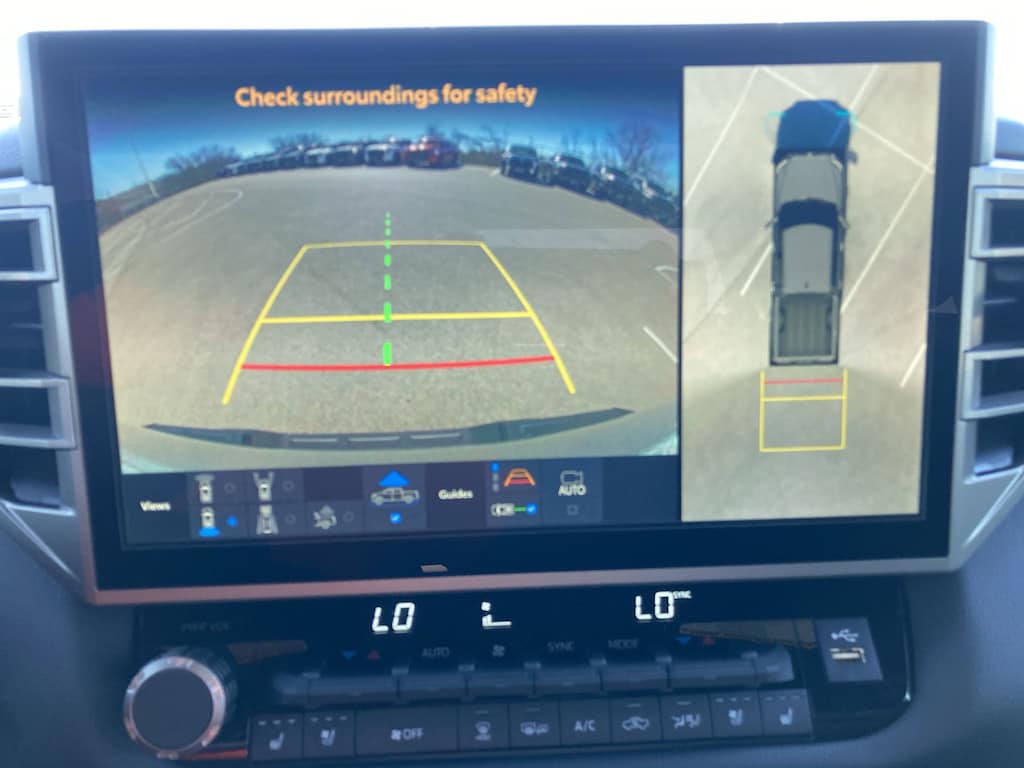 - Backup camerawith projected path.The backup camera does not provide a comprehensive view. Always look over shoulder and use outside mirrors. See. Owner's. Manual. For limitations.