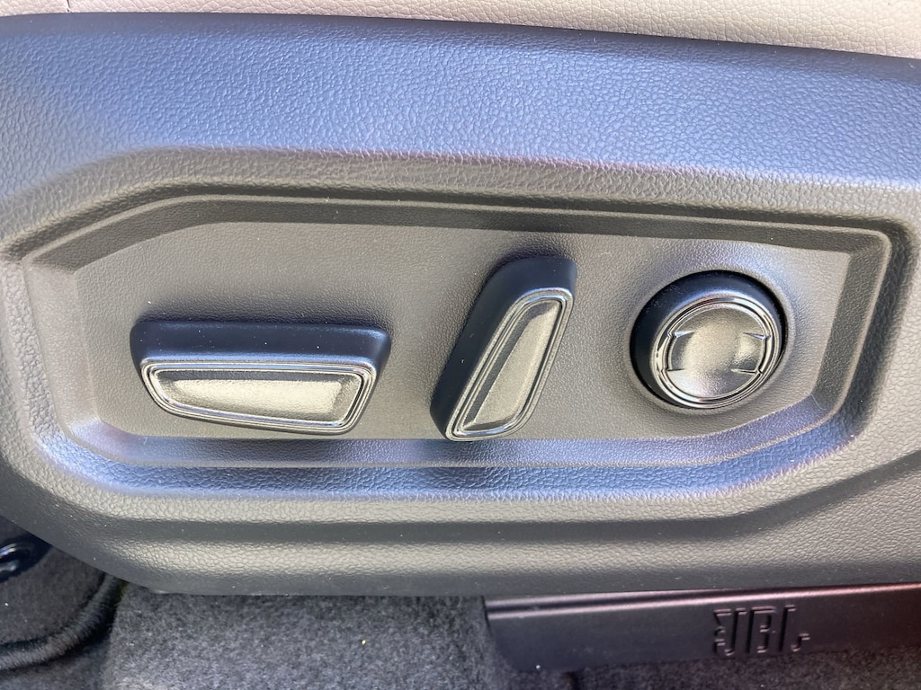 - Leather-trimmed seats with contrast stitching; 8-way power-adjustable driver and front passenger seats with power-adjustable lumbar support.