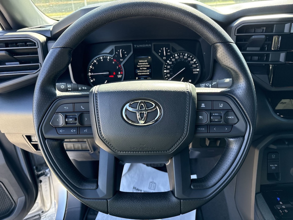Welcome to Cavender Toyota, a Cavender Auto Family dealership. This vehicle is located at 5730 NW Loop 410, San Antonio, TX 78238. Here at Cavender, we build relationships based on trust and integrity to exceed your expectations in your ownership experience. Quite simply, we strive to Make Confidence Happen! So stop by and allow us to serve your automotive needs; we would love to meet you.Celestial Silver Metallic 2026 Toyota Tundra SR5 RWD 10-Speed Automatic 3.4L V6Features: SX Package (Fabric Seat Trim (FA) and Wheels: 20" x 8J Matte Black TRD Sport Style), Black w/Fabric Seat Trim, 18" x 7.5J Alloy Wheels, 3.31 Axle Ratio, 4-Wheel Disc Brakes, 9 Speakers, ABS brakes, Air Conditioning, Alloy wheels, AM/FM Radio, AM/FM radio: SiriusXM, Apple CarPlay/Android Auto, Auto High-beam Headlights, Automatic temperature control, Brake assist, Bumpers: body-color, Delay-off headlights, Driver door bin, Driver vanity mirror, Dual front impact airbags, Dual front side impact airbags, Electronic Stability Control, Emergency communication system: Safety Connect (up to 10-year trial subscription), Exterior Parking Camera Rear, Fabric Seat Trim, Front anti-roll bar, Front Bucket Seats, Front Center Armrest, Front fog lights, Front reading lights, Front wheel independent suspension, Fully automatic headlights, Heated door mirrors, Illuminated entry, Knee airbag, Low tire pressure warning, Occupant sensing airbag, Outside temperature display, Overhead airbag, Overhead console, Panic alarm, Passenger door bin, Passenger vanity mirror, Power door mirrors, Power driver seat, Power steering, Power windows, Radio data system, Rear reading lights, Rear step bumper, Rear window defroster, Remote keyless entry, Security system, Speed control, Speed-sensing steering, Split folding rear seat, Steering wheel mounted audio controls, Tachometer, Telescoping steering wheel, Tilt steering wheel, Traction control, Trip computer, Variably intermittent wipers, and Voltmeter.