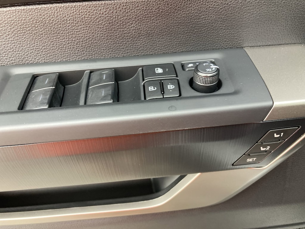 - Leather-wrapped power tilt/telescopic steering wheel with phone, audio, display/infotainment, and driver assist controls.