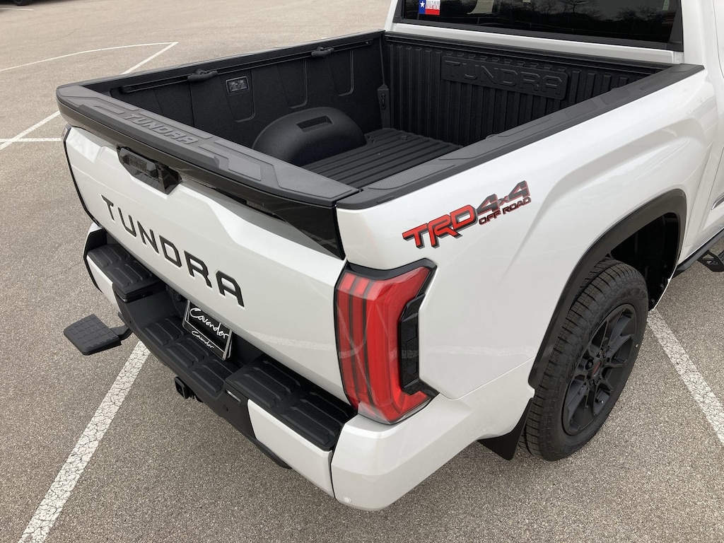 Welcome to Cavender Toyota, a Cavender Auto Family dealership. This vehicle is located at 5730 NW Loop 410, San Antonio, TX 78238. Here at Cavender, we build relationships based on trust and integrity to exceed your expectations in your ownership experience. Quite simply, we strive to Make Confidence Happen! So stop by and allow us to serve your automotive needs; we would love to meet you.Wind Chill Pearl 2026 Toyota Tundra Platinum TRD Off Road 4WD 10-Speed Automatic 3.4L V6Features: TRD Off-Road Package, 4WD, Black w/Premium Leather Seat Trim, 10-Way Power Adjustable Heated and Ventilated Front Seats, 12 Speakers, 3.31 Axle Ratio, 4-Wheel Disc Brakes, ABS brakes, Air Conditioning, Alloy wheels, AM/FM radio: SiriusXM, Apple CarPlay/Android Auto, Auto High-beam Headlights, Auto-dimming door mirrors, Auto-dimming Rear-View mirror, Automatic temperature control, Bed Step, Brake assist, Bumpers: body-color, Carpet Floor Mats, Compass, Delay-off headlights, Driver door bin, Driver vanity mirror, Dual front impact airbags, Dual front side impact airbags, Electronic Stability Control, Emergency communication system: Safety Connect (up to 10-year trial subscription), Exterior Parking Camera Rear, Front anti-roll bar, Front Bucket Seats, Front Center Armrest, Front dual zone A/C, Front fog lights, Front reading lights, Front wheel independent suspension, Fully automatic headlights, Garage door transmitter: HomeLink, Head Up Display (HUD), Heated door mirrors, Heated front seats, Heated rear seats, Heated steering wheel, Illuminated entry, Knee airbag, Leather Shift Knob, Leather steering wheel, Low tire pressure warning, Memory seat, Navigation system: Drive Connect Cloud Navigation (1-year trial subscription), Occupant sensing airbag, Outside temperature display, Overhead airbag, Overhead console, Panic alarm, Passenger door bin, Passenger vanity mirror, Power door mirrors, Power driver seat, Power moonroof, Power passenger seat, Power steering, Power windows, Predator Drop Step, Premium Leather Seat Trim, Radio data system, Radio: Premium Audio, Rain sensing wipers, Rear reading lights, Rear seat center armrest, Rear step bumper, Rear window defroster, Remote keyless entry, Safety Connect, Security system, Speed control, Speed-sensing steering, Speed-Sensitive Wipers, Split folding rear seat, Steering wheel memory, Steering wheel mounted audio controls, Tachometer, Telescoping steering wheel, Tilt steering wheel, Traction control, Trip computer, Turn signal indicator mirrors, Variably intermittent wipers, Ventilated front seats, Ventilated rear seats, Voltmeter, Wheel Locks, and Wheels: 20" Dark Painted Alloy.