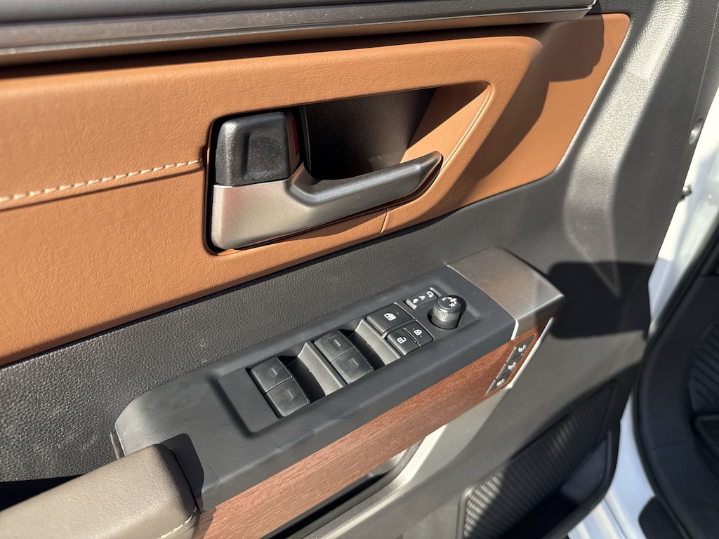 - Leather-wrapped power tilt/telescopic steering wheel with phone, audio, display/infotainment, and driver assist controls.