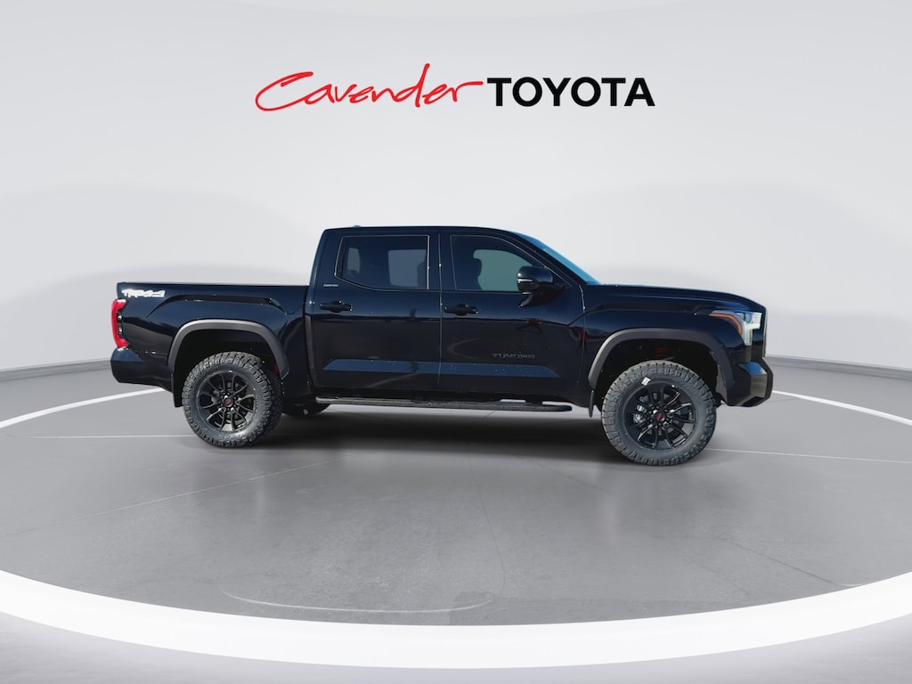 Welcome to Cavender Toyota, a Cavender Auto Family dealership. This vehicle is located at 5730 NW Loop 410, San Antonio, TX 78238. Here at Cavender, we build relationships based on trust and integrity to exceed your expectations in your ownership experience. Quite simply, we strive to Make Confidence Happen! So stop by and allow us to serve your automotive needs; we would love to meet you.Midnight Black Metallic 2026 Toyota Tundra Limited Premium TRD Off Road 4WD 10-Speed Automatic 3.4L V6Features: Power Package (120V Deck and Cabin Power Supply and Wireless Charger), Premium Package (High Grade Full LED Headlamp), Towing Package, TRD Off-Road Package (Multi-Terrain Back Monitor and Wheels: : 20" TRD Alloy), 4WD, Boulder w/Leather Seat Trim, 20" Alloy Wheels, 3.31 Axle Ratio, 3" Lift Kit, 4-Wheel Disc Brakes, 8-Way Power Adjustable Heated/Ventilated Front Seats, 9 Speakers, ABS brakes, Air Conditioning, Alloy wheels, AM/FM radio: SiriusXM, Apple CarPlay/Android Auto, Auto High-beam Headlights, Auto-dimming door mirrors, Auto-dimming Rear-View mirror, Automatic temperature control, Bed Step, Blind Spot Monitor, Brake assist, Bumpers: body-color, Carpet Floor Mats, Delay-off headlights, Driver door bin, Driver vanity mirror, Dual front impact airbags, Dual front side impact airbags, Electronic Stability Control, Emergency communication system: Safety Connect (up to 10-year trial subscription), Exterior Parking Camera Rear, Folding Color-Keyed Outside Mirrors, Front anti-roll bar, Front Bucket Seats, Front Center Armrest, Front dual zone A/C, Front fog lights, Front reading lights, Front wheel independent suspension, Fully automatic headlights, Garage door transmitter: HomeLink, Heated door mirrors, Heated front seats, Heated Leather Steering Wheel, Illuminated entry, JBL Premium Audio, Knee airbag, Leather Seat Trim, Leather Shift Knob, Leather steering wheel, Low tire pressure warning, Memory seat, Navigation system: Drive Connect Cloud Navigation (1-year trial subscription), Occupant sensing airbag, Outside temperature display, Overhead airbag, Overhead console, Panic alarm, Panoramic Sunroof and Moonroof, Panoramic View Back Monitor, Passenger door bin, Passenger vanity mirror, Power door mirrors, Power driver seat, Power passenger seat, Power steering, Power windows, Radio data system, Radio: Audio Plus, Rear reading lights, Rear seat center armrest, Rear step bumper, Rear window defroster, Remote keyless entry, Safety Connect, Security system, Speed control, Speed-sensing steering, Split folding rear seat, Steering wheel mounted audio controls, Tachometer, Telescoping steering wheel, Tilt steering wheel, Traction control, TRD Cast Aluminum Running Board, Trip computer, Turn signal indicator mirrors, Variably intermittent wipers, Ventilated front seats, and Voltmeter.