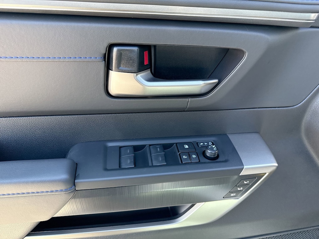 - Leather-wrapped power tilt/telescopic steering wheel with phone, audio, display/infotainment, and driver assist controls.