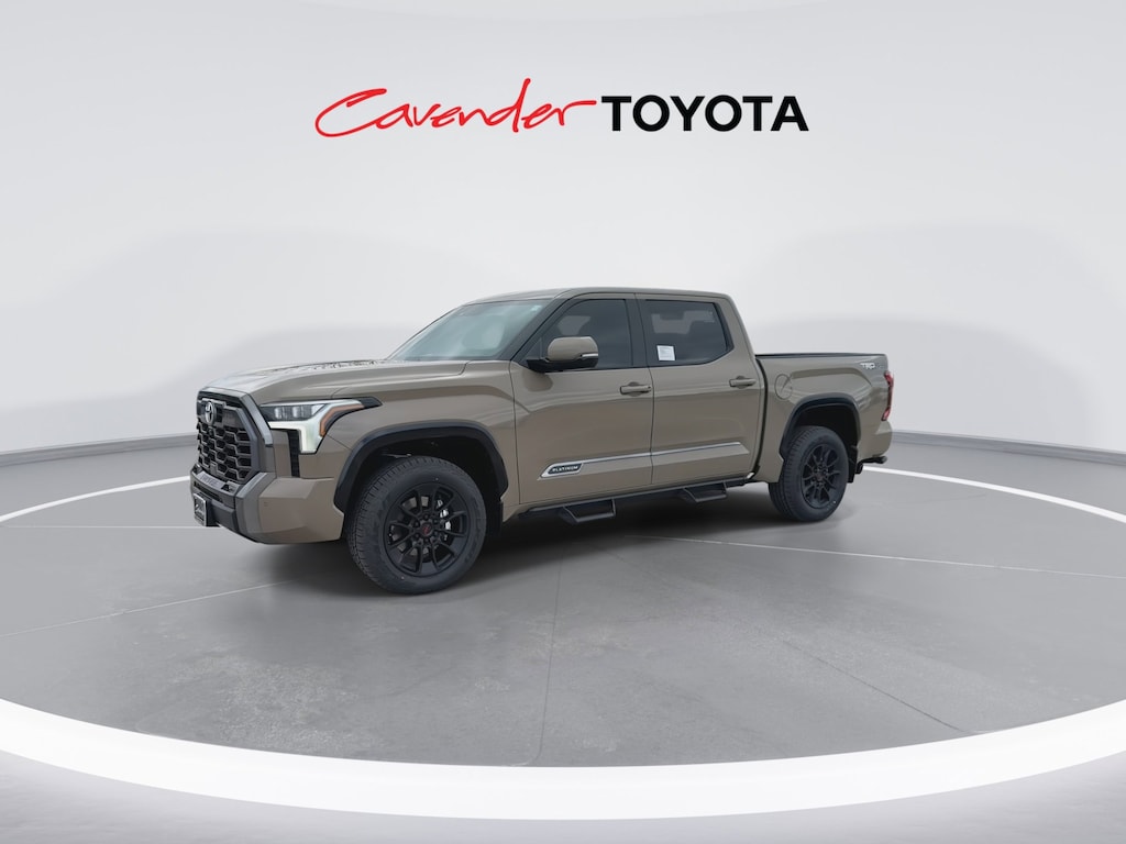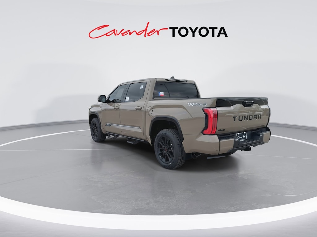 Welcome to Cavender Toyota, a Cavender Auto Family dealership. This vehicle is located at 5730 NW Loop 410, San Antonio, TX 78238. Here at Cavender, we build relationships based on trust and integrity to exceed your expectations in your ownership experience. Quite simply, we strive to Make Confidence Happen! So stop by and allow us to serve your automotive needs; we would love to meet you.Mudbath 2026 Toyota Tundra Platinum TRD Off Road 4WD 10-Speed Automatic 3.4L V6Features: TRD Off-Road Package (Multi-Terrain Back Monitor and Wheels: : 20" TRD Alloy), 4WD, Black w/Premium Leather Seat Trim, ABS brakes, Active Cruise Control, Alloy wheels, Electronic Stability Control, Front dual zone A/C, Heated door mirrors, Heated front seats, Illuminated entry, Low tire pressure warning, Navigation System, Remote keyless entry, Traction control, 3.31 Axle Ratio, 4-Wheel Disc Brakes, Air Conditioning, AM/FM radio: SiriusXM, Apple CarPlay/Android Auto, Auto High-beam Headlights, Auto-dimming door mirrors, Auto-dimming Rear-View mirror, Automatic temperature control, Brake assist, Bumpers: body-color, Delay-off headlights, Driver door bin, Driver vanity mirror, Dual front impact airbags, Dual front side impact airbags, Emergency communication system: Safety Connect (up to 10-year trial subscription), Exterior Parking Camera Rear, Front anti-roll bar, Front Bucket Seats, Front Center Armrest, Front fog lights, Front reading lights, Front wheel independent suspension, Fully automatic headlights, Garage door transmitter: HomeLink, Knee airbag, Leather Shift Knob, Leather steering wheel, Memory seat, Navigation system: Drive Connect Cloud Navigation (1-year trial subscription), Occupant sensing airbag, Outside temperature display, Overhead airbag, Overhead console, Panic alarm, Passenger door bin, Passenger vanity mirror, Power door mirrors, Power driver seat, Power passenger seat, Power steering, Power windows, Radio data system, Rear reading lights, Rear seat center armrest, Rear step bumper, Rear window defroster, Safety Connect, Security system, Speed control, Speed-sensing steering, Split folding rear seat, Steering wheel mounted audio controls, Tachometer, Telescoping steering wheel, Tilt steering wheel, Trip computer, Turn signal indicator mirrors, Variably intermittent wipers, Ventilated front seats, and Voltmeter.